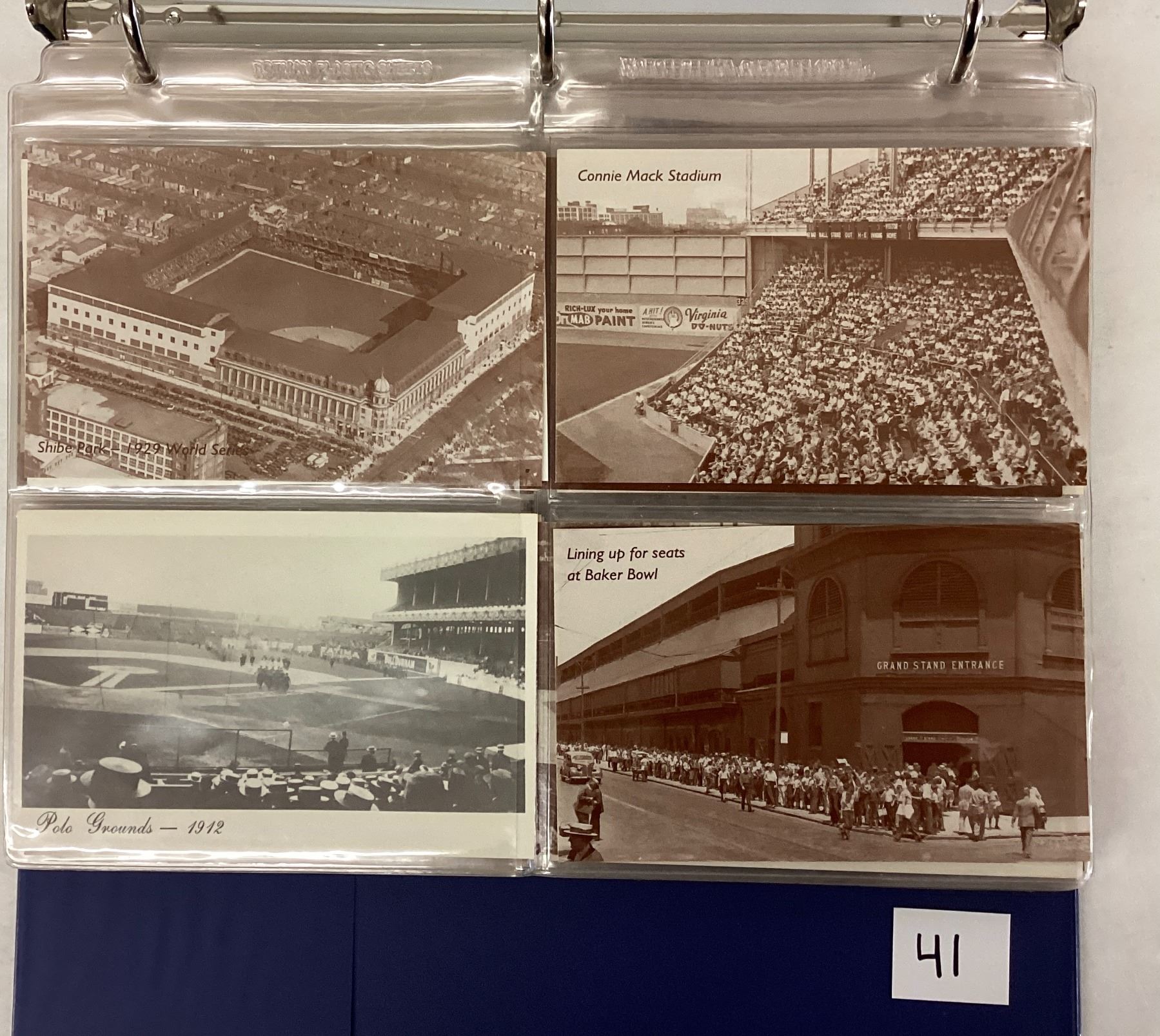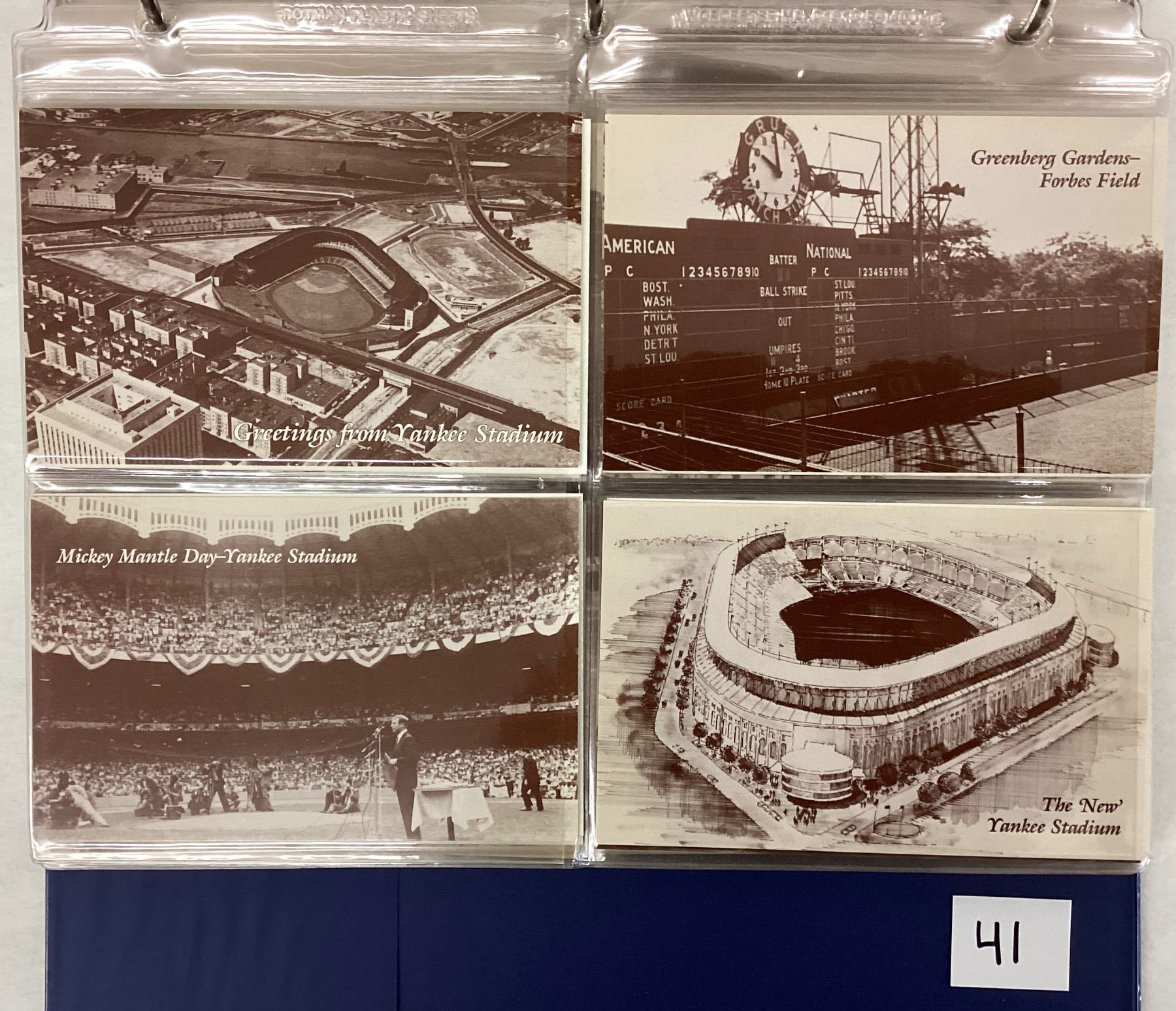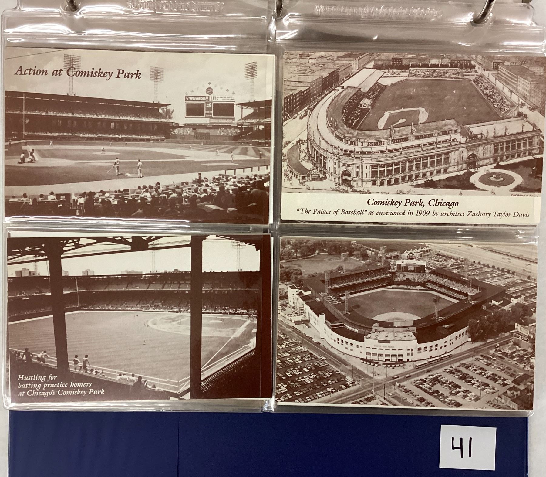 Album of 140+ postcards. Stadiums, players. Some by Vic Palos and the Way Back When series. Standard size chrome.