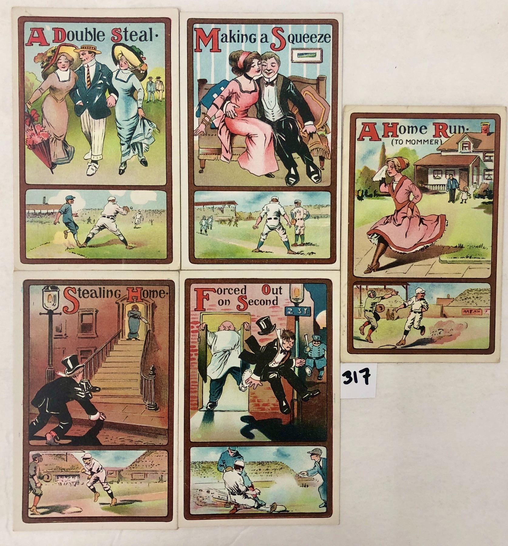 5 baseball comic postcards. All same series.