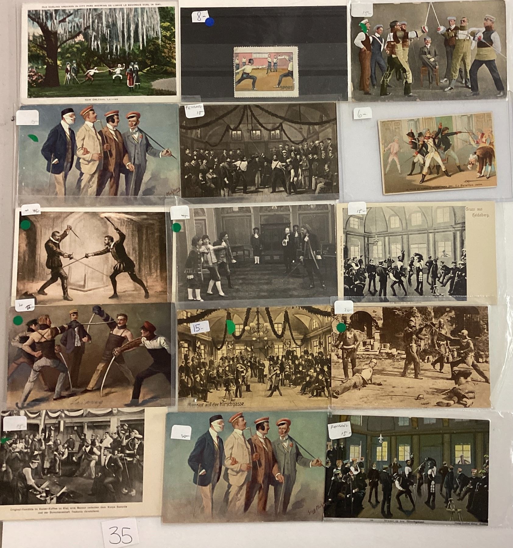 20 early fencing postcards.