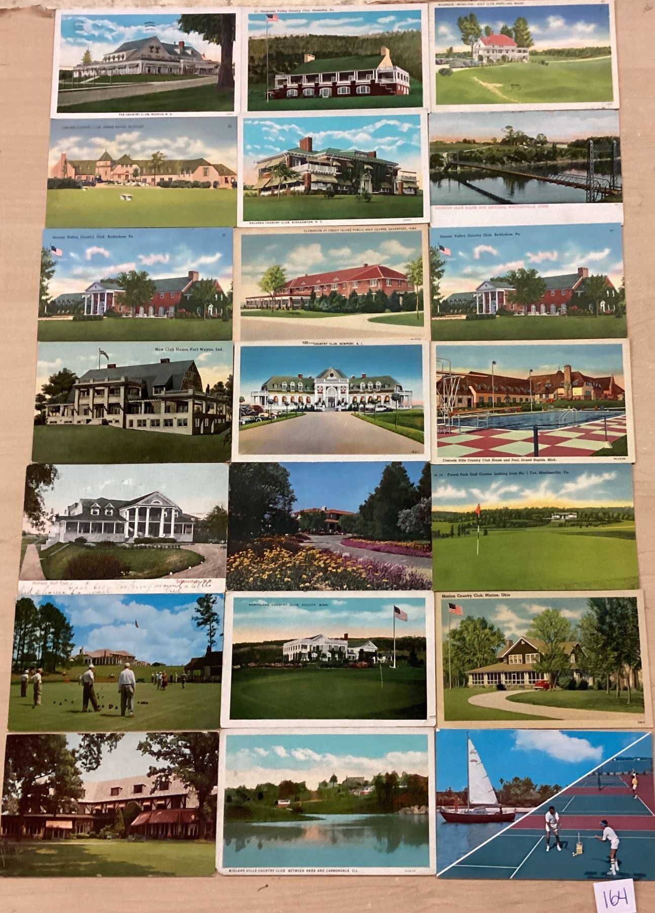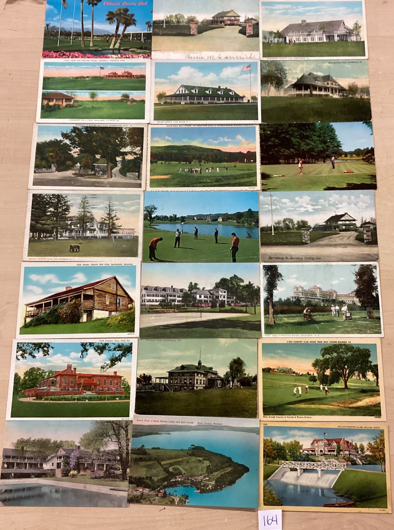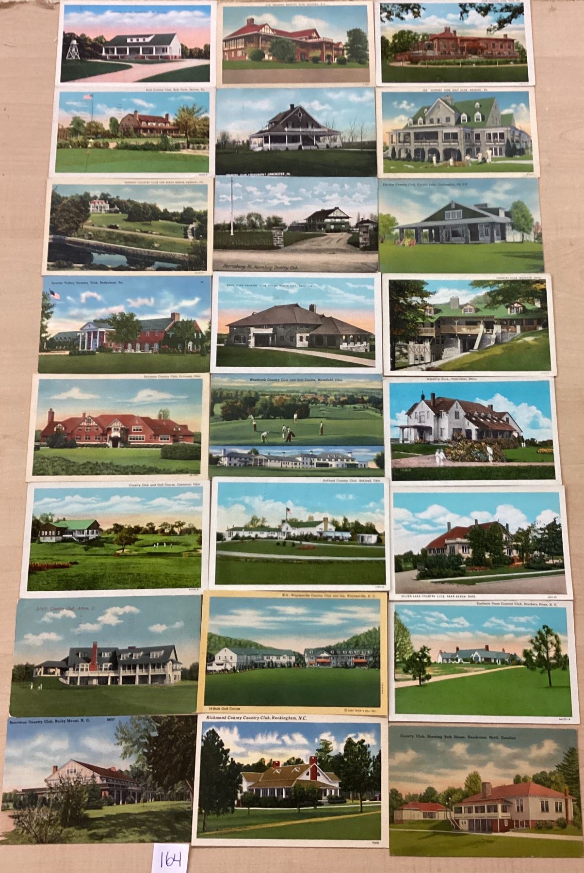Over 100 country club postcards. Early to linen. Some standard size chrome.