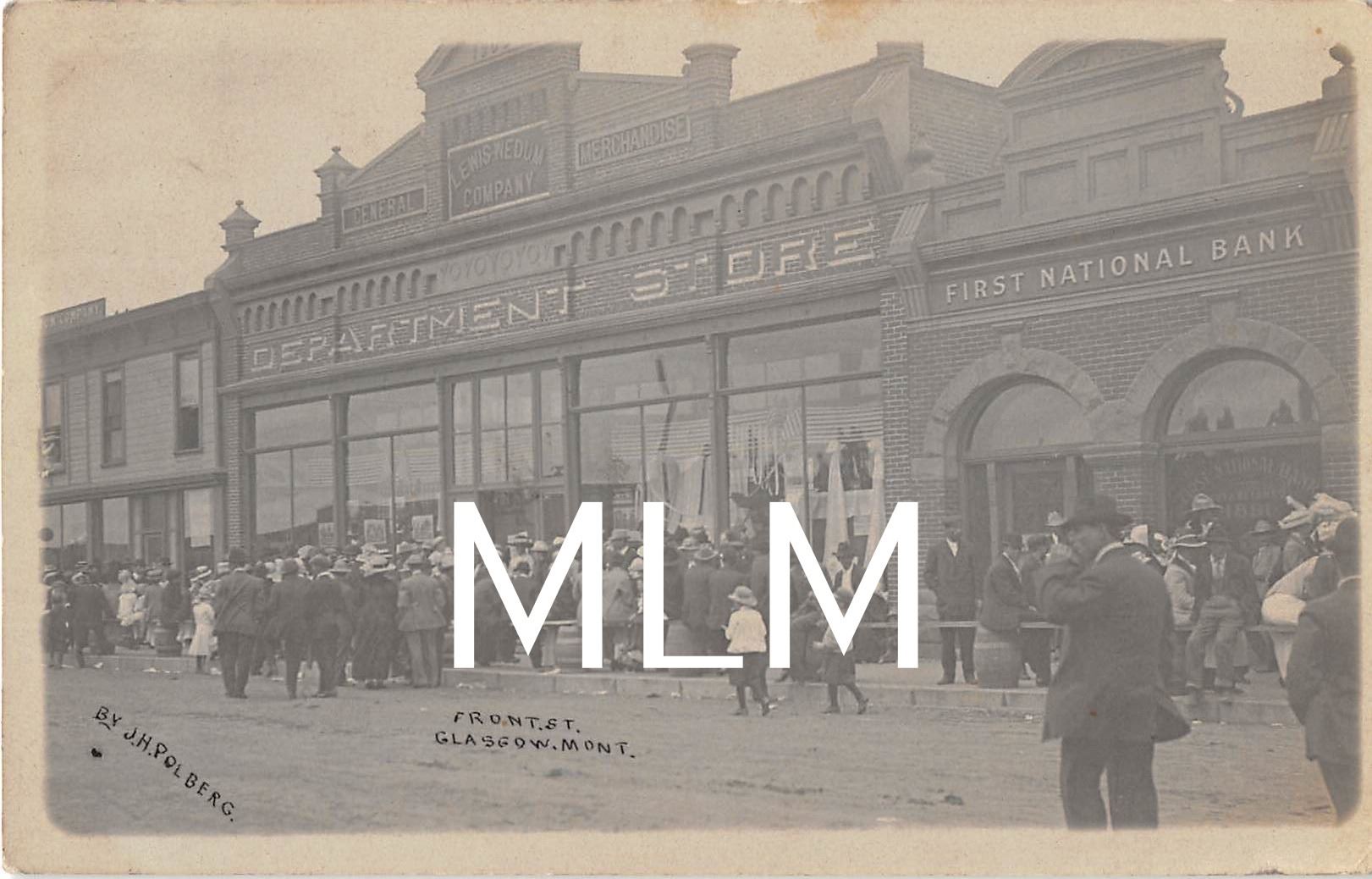 Store Front Gathering National Bank Glasgow, Montana Photo Postcard