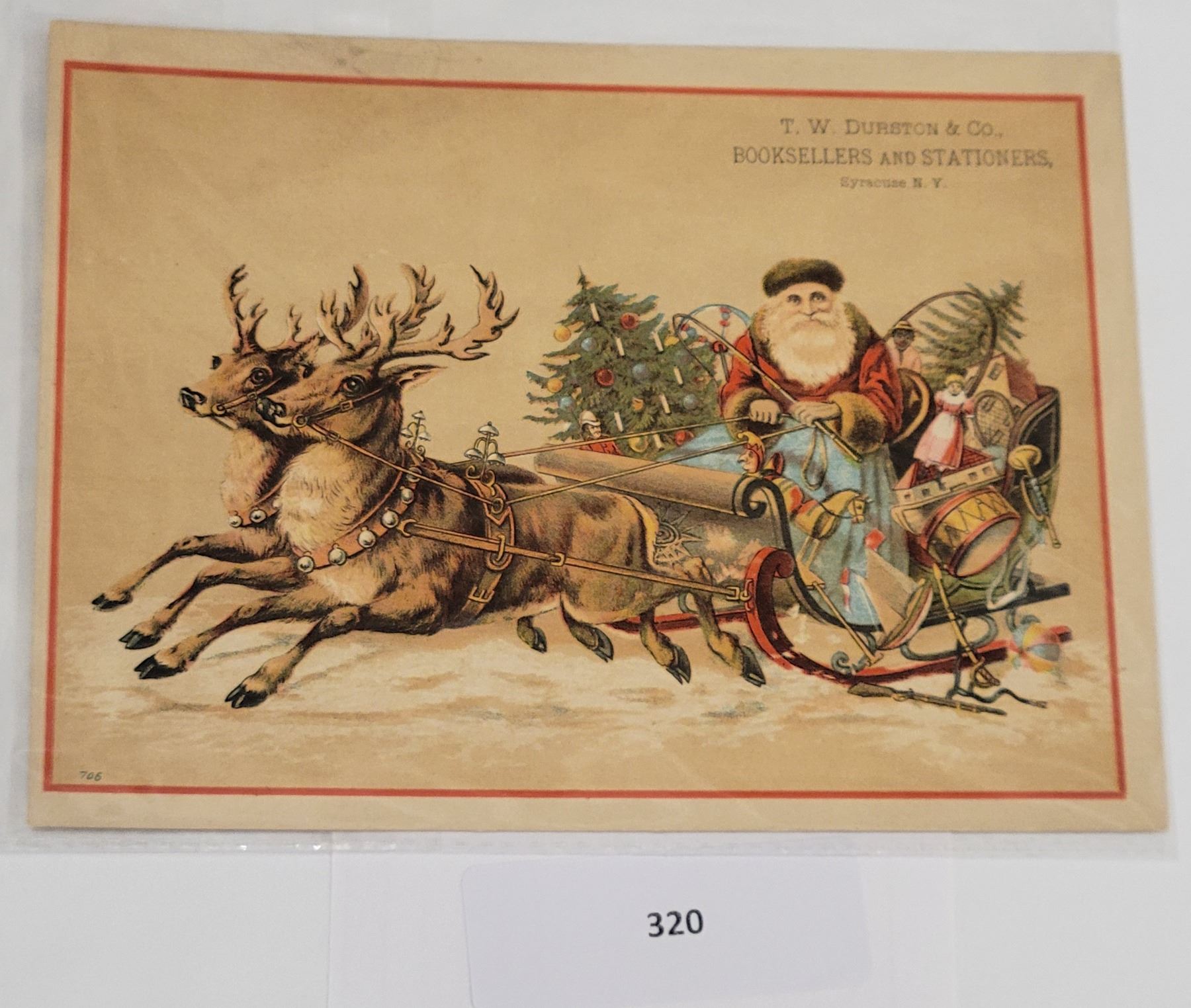 T.W. Durston & Co. Booksellers and Stationers, Syracuse, N.Y. Santa Claus Trade Card