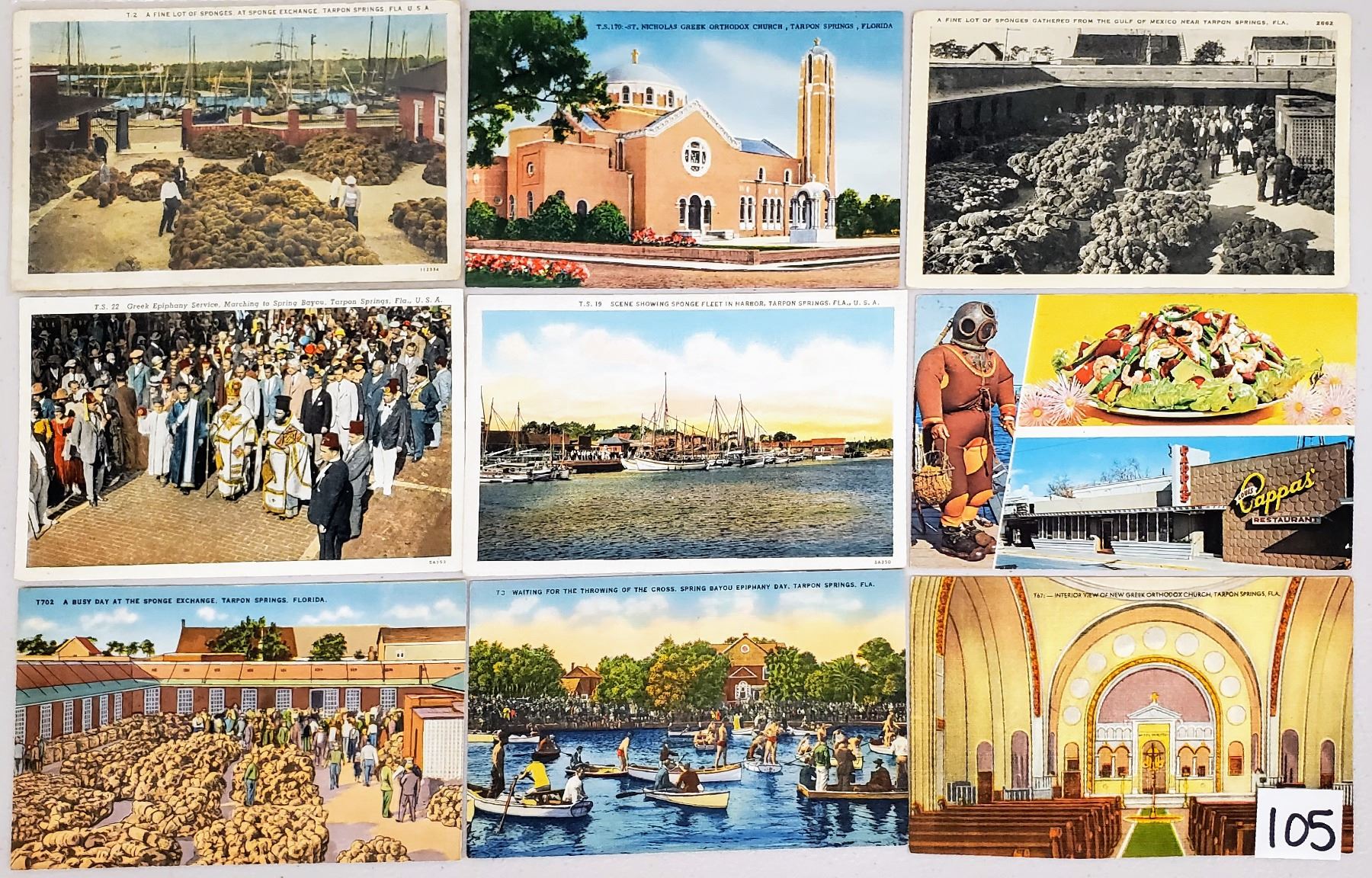 Approx. 60 Tarpon Springs postcards. Early to standard size chrome.