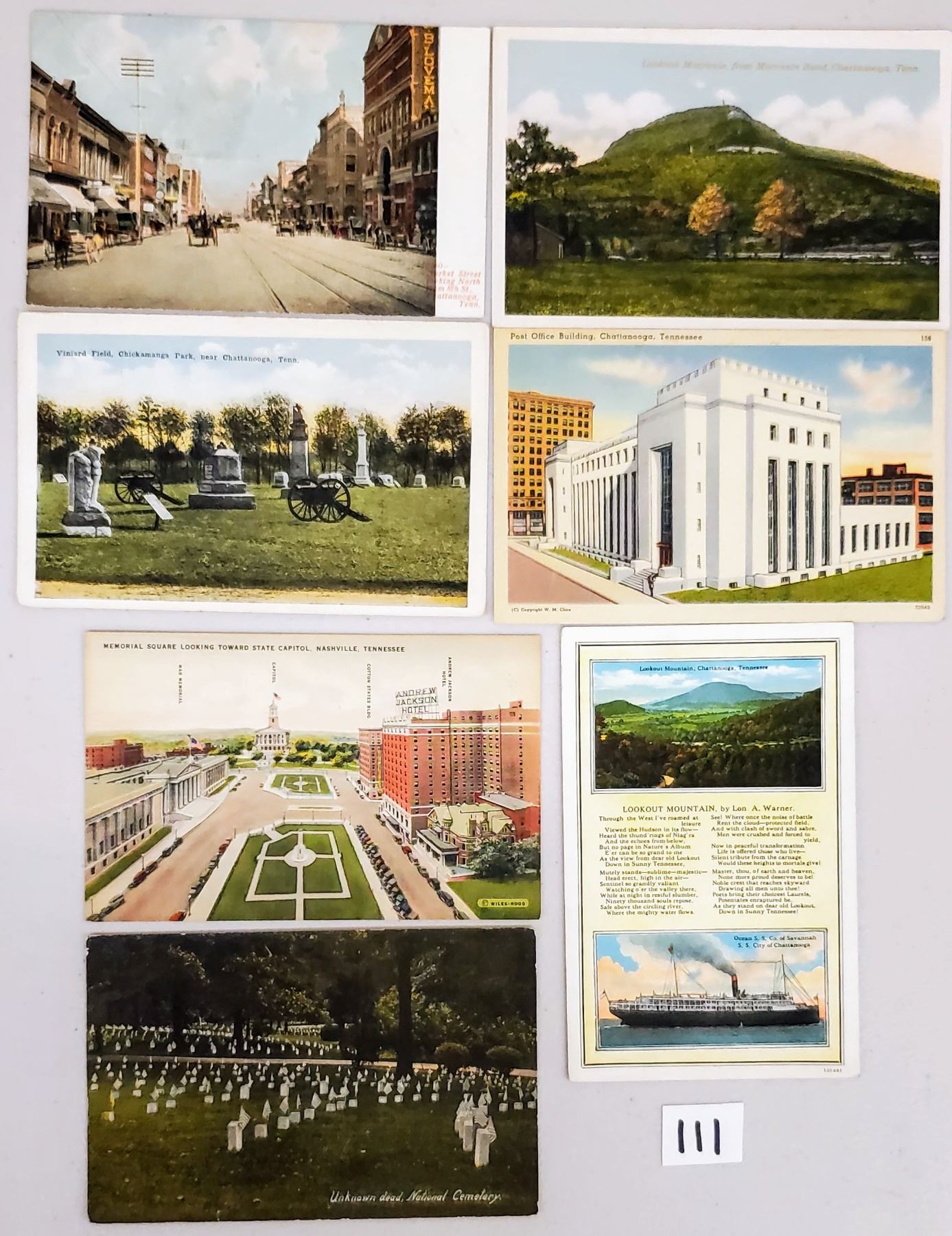 Approx. 85 TN postcards. Early to linen. Mostly Chattanooga and Nashville.