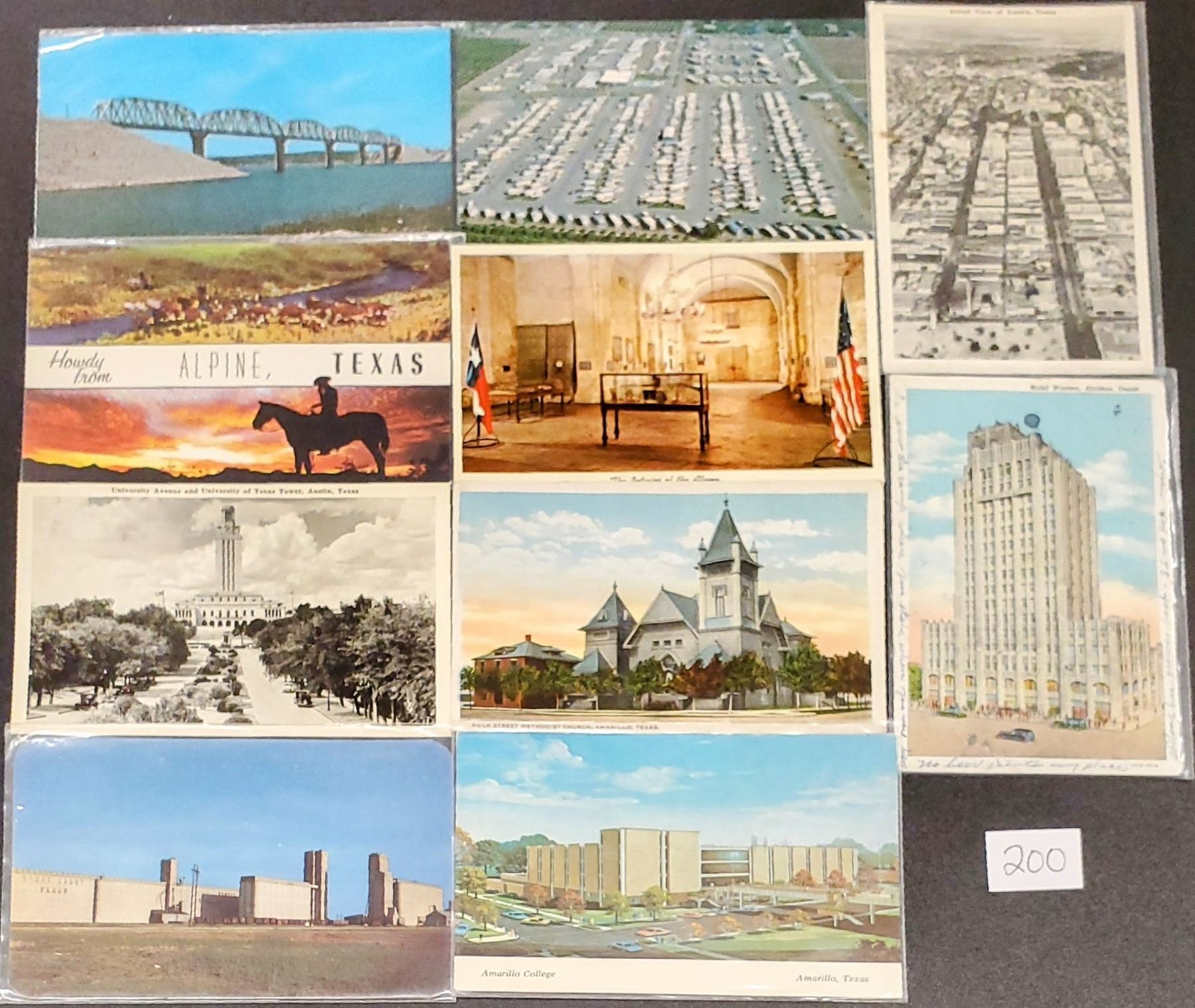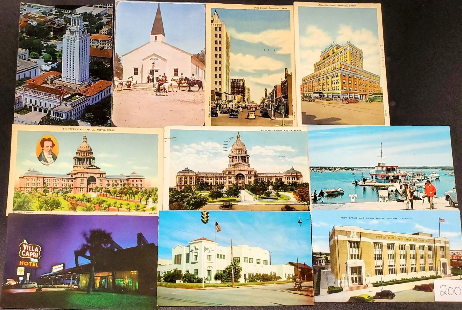 Over 200 Texas postcards. Mostly standard size chrome and some linen.
