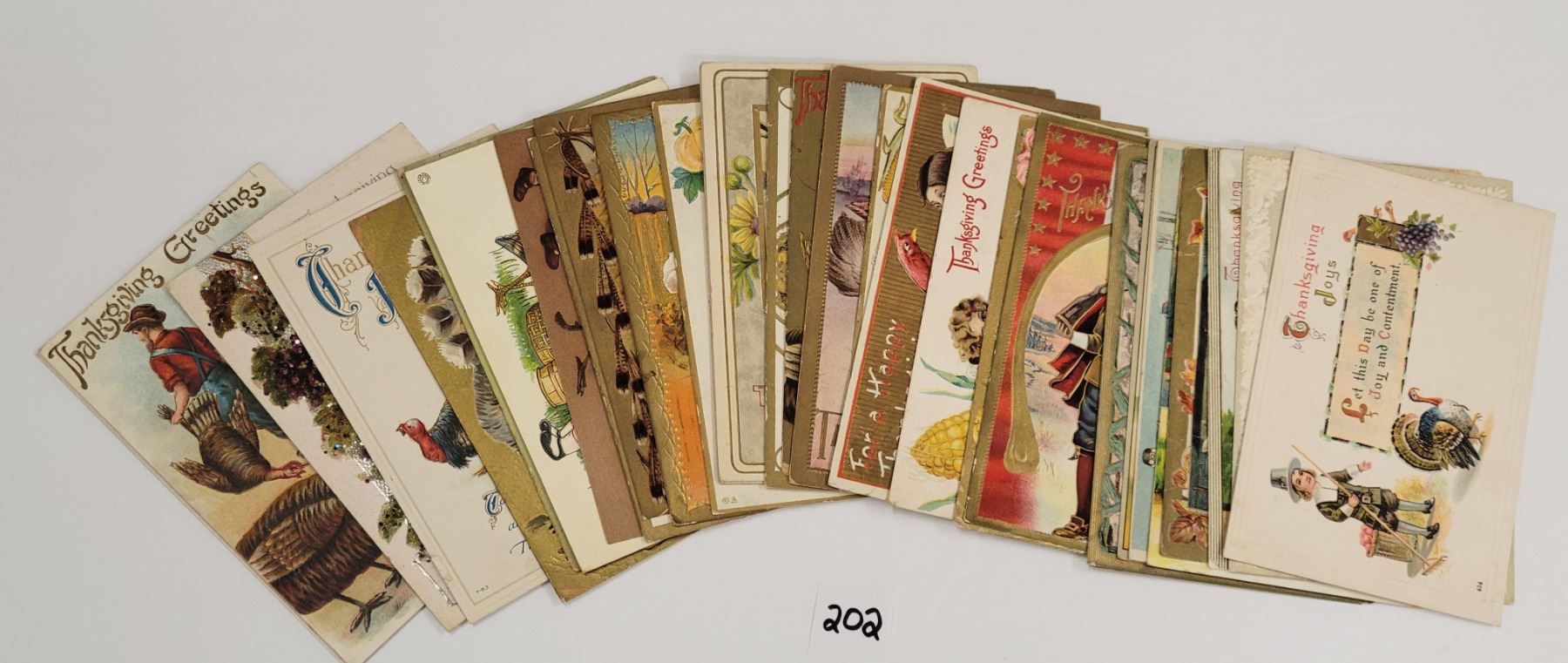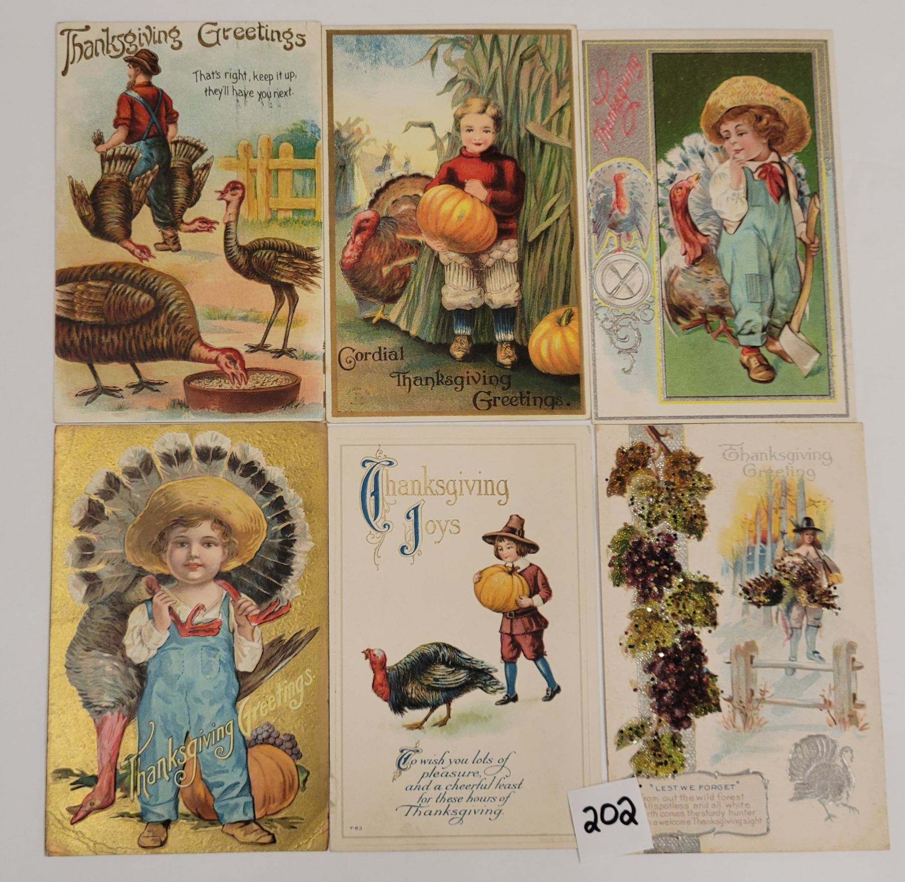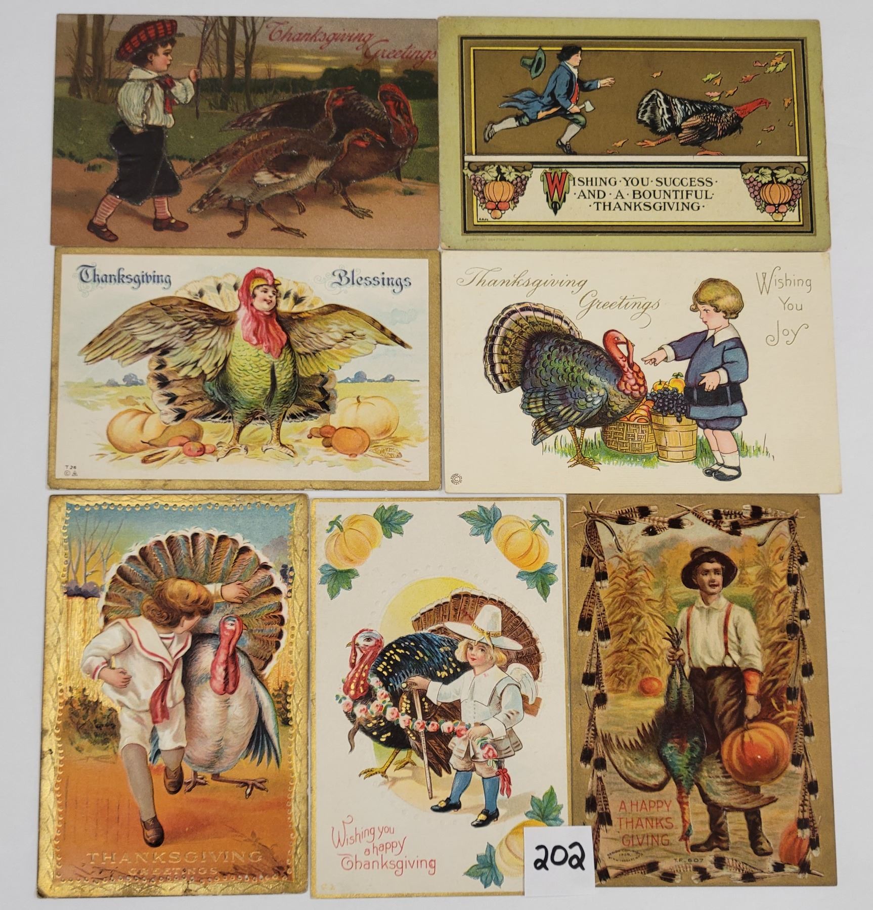 Over 30 Thanksgiving postcards with turkeys & boys/men. Early.