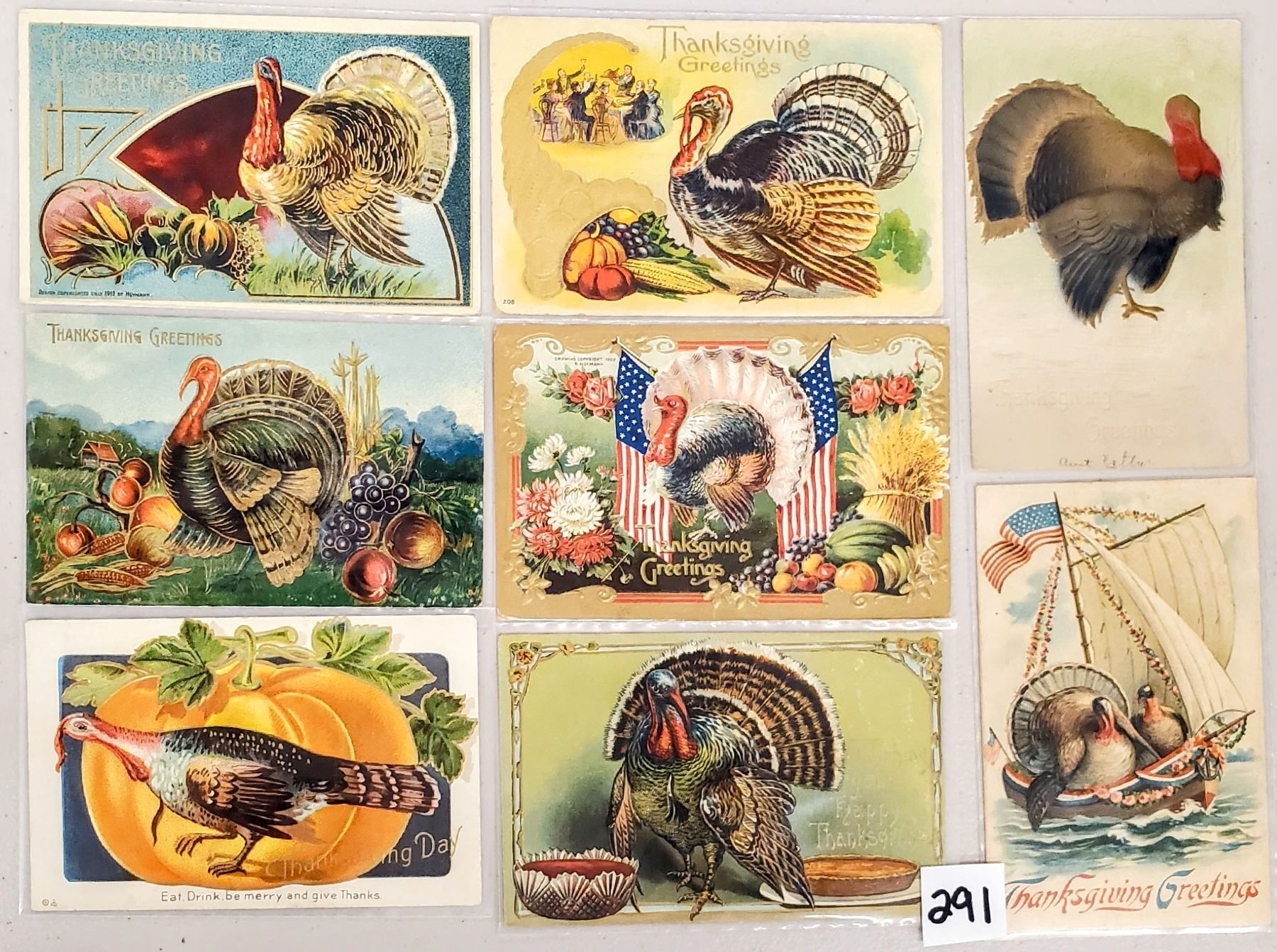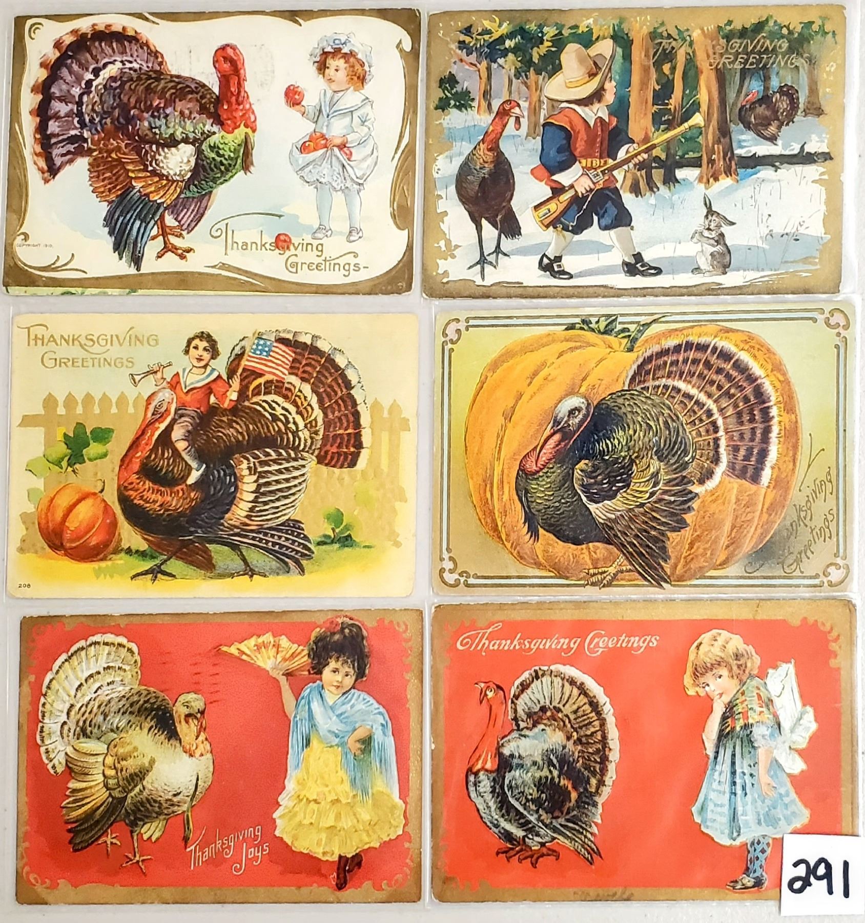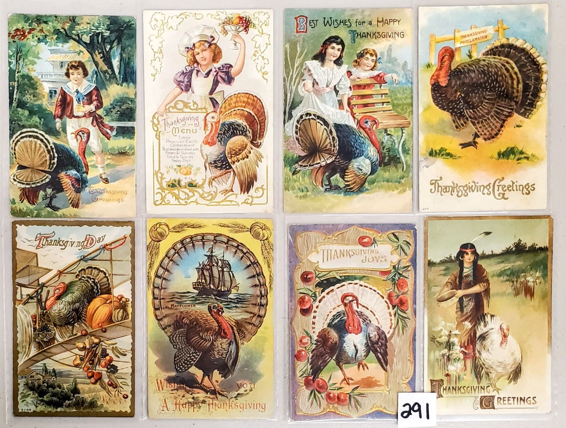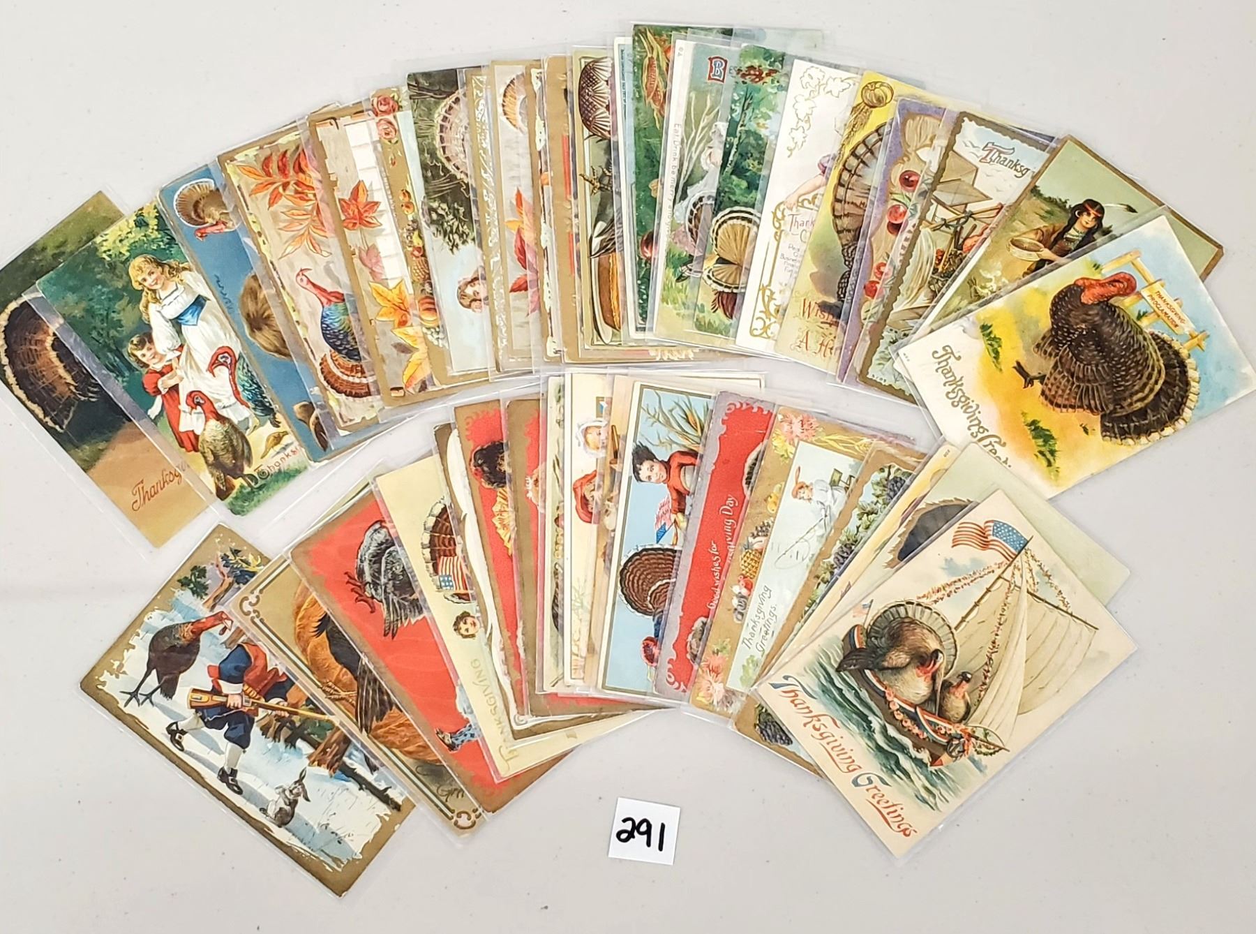 40 Thanksgiving holiday postcards.