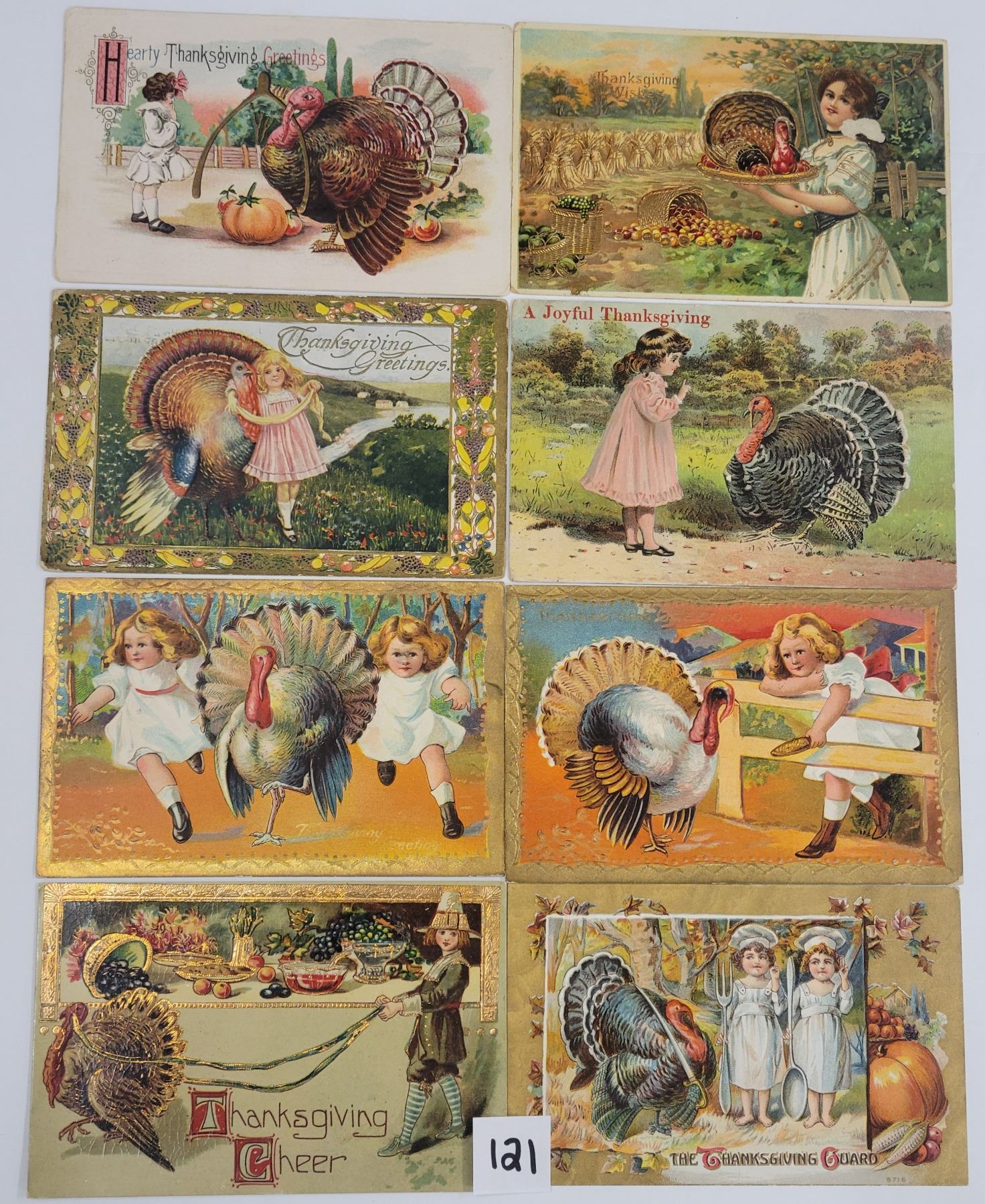 40 Thanksgiving postcards with Turkeys and girls/ladies.