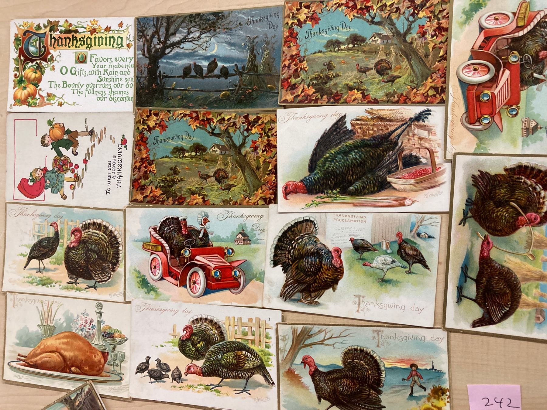 Over 45 Thanksgiving postcards by Tuck publishing. Children, turkeys, etc. Not all perfect condition.