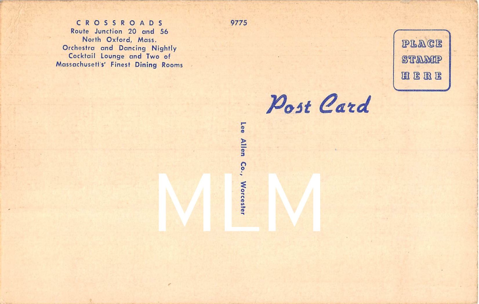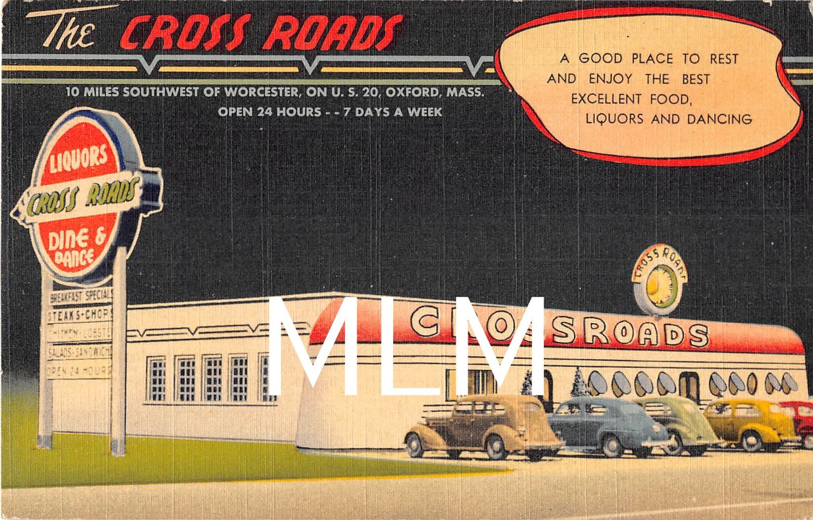 The Cross Roads Liquors, Dine & Dance Linen Restaurant Oxford, Massachusetts Postcard
