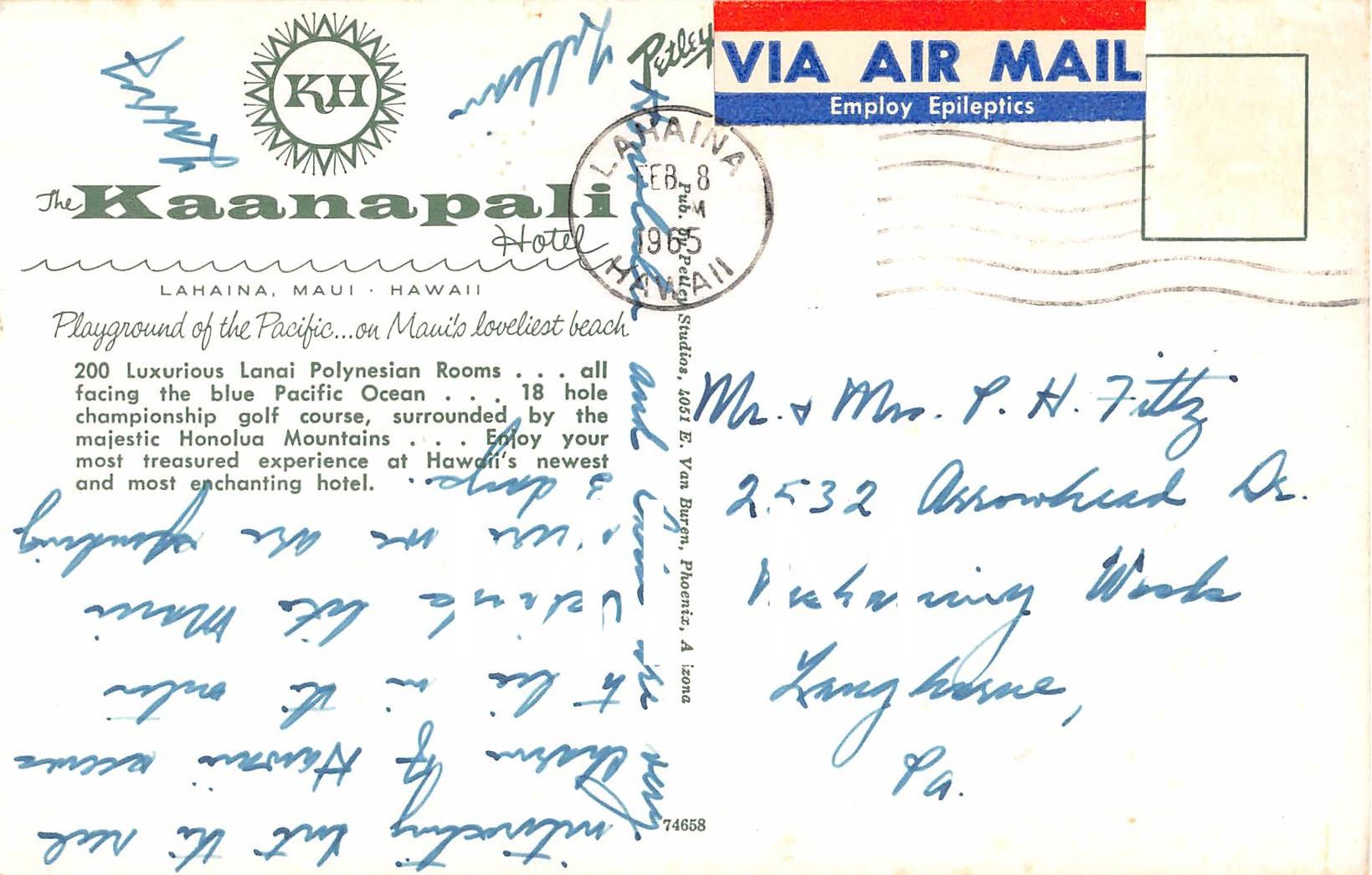 The Kaanapali Hotel Lahaina, Maui Postcard