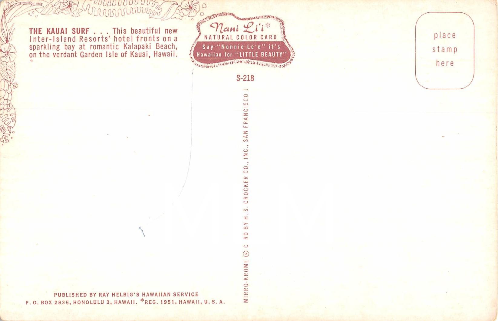 The Kauai Surf at Kalapaki Beach, Kauai, Hawaii Postcard