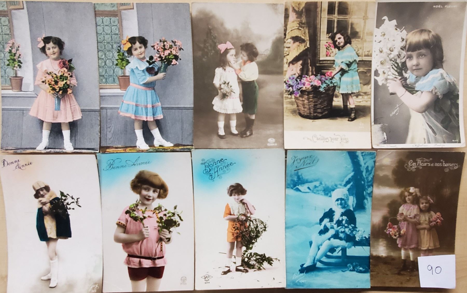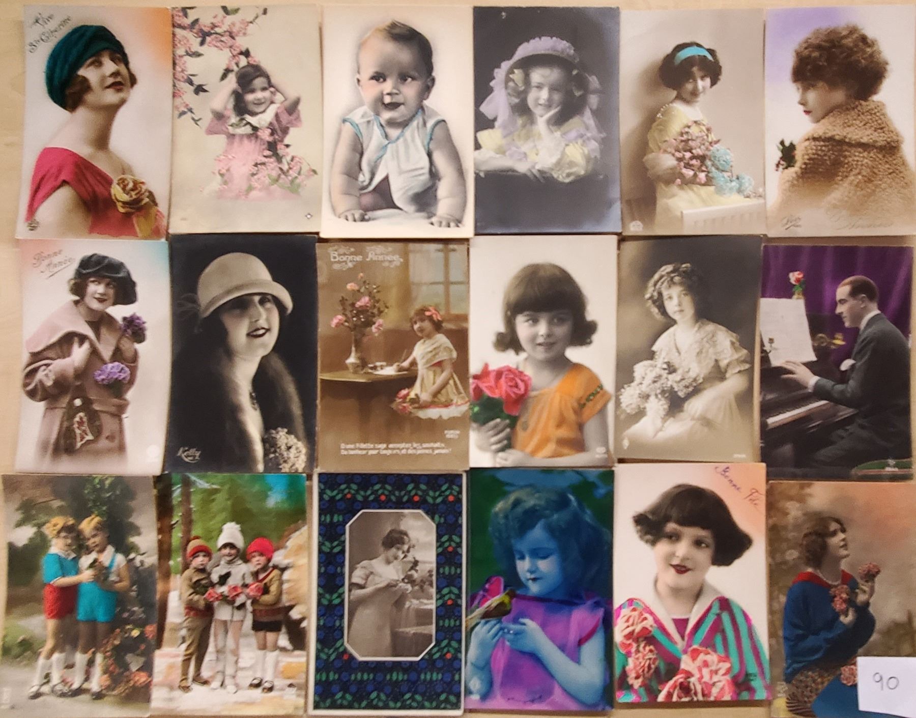 Over 300 cards. Mostly tinted photos. Children, ladies, lovers, etc. Some printed.