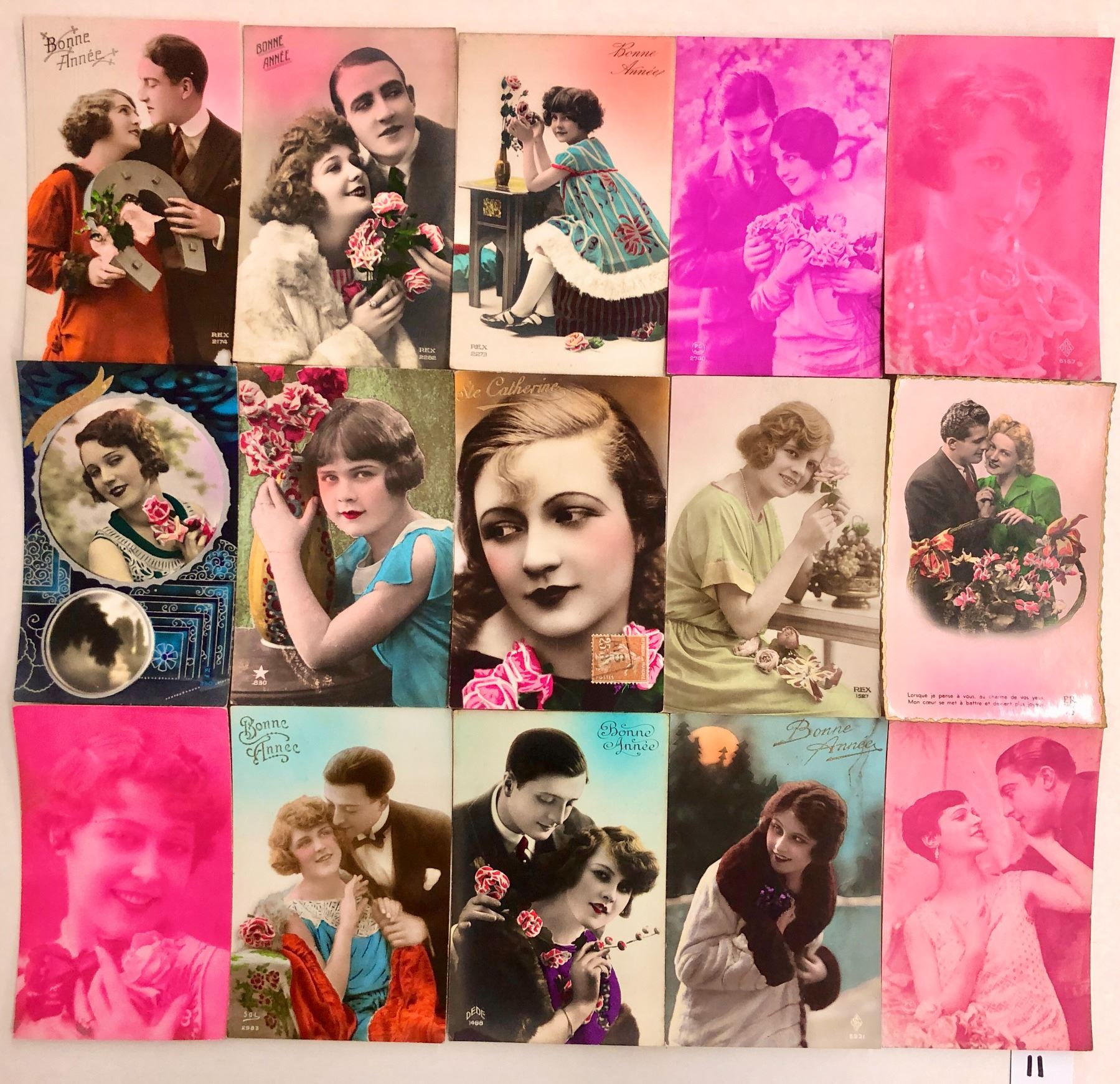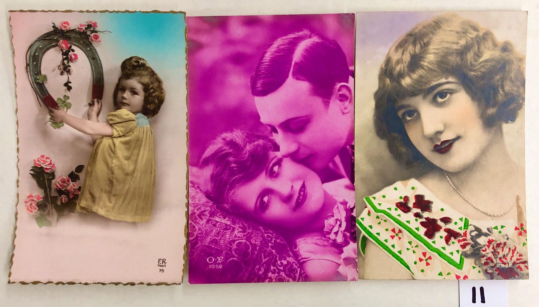 Over 40 tinted real photo lady postcards.