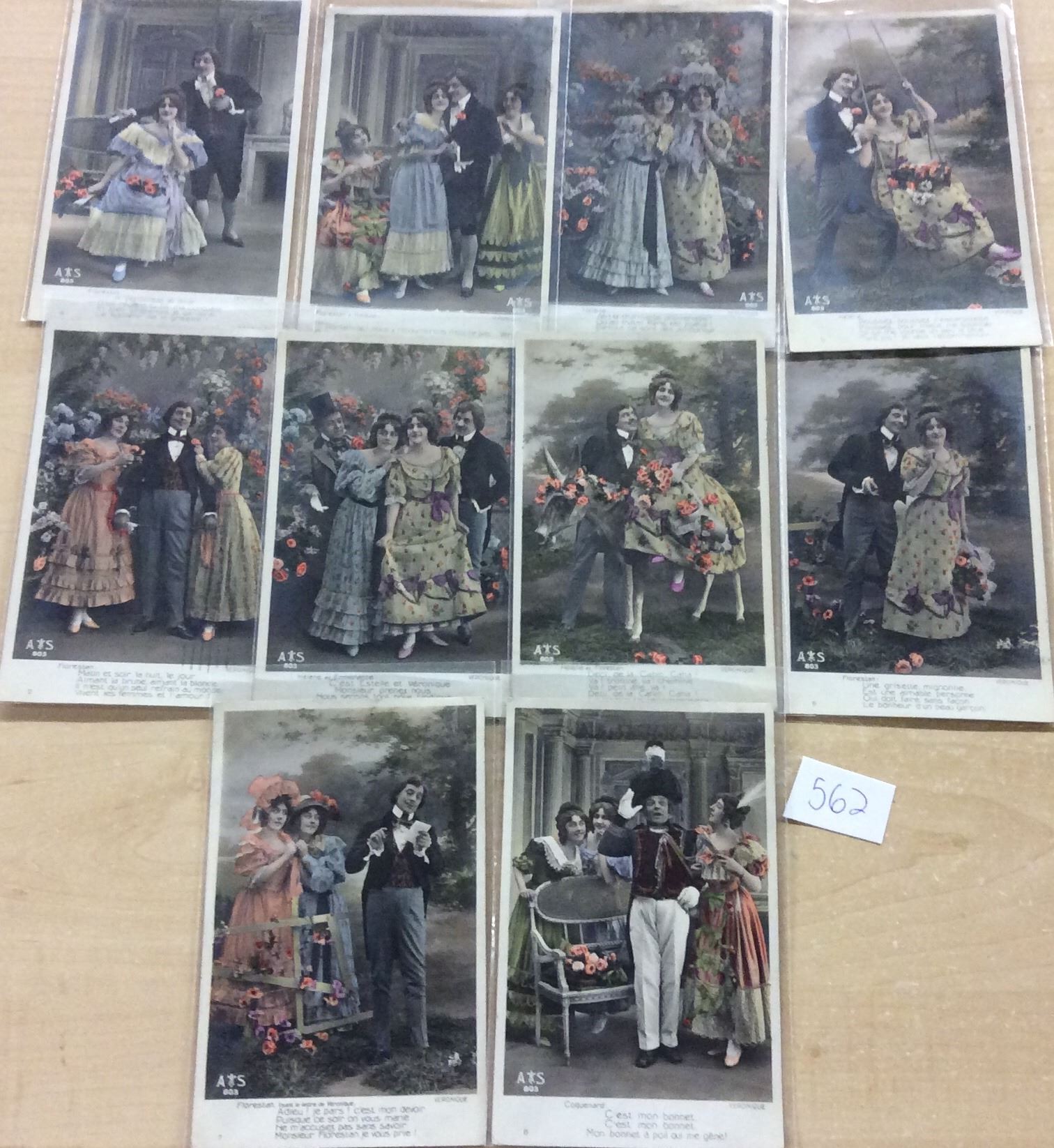 35 tinted real photo opera romance postcards. 4 sets-partial sets.