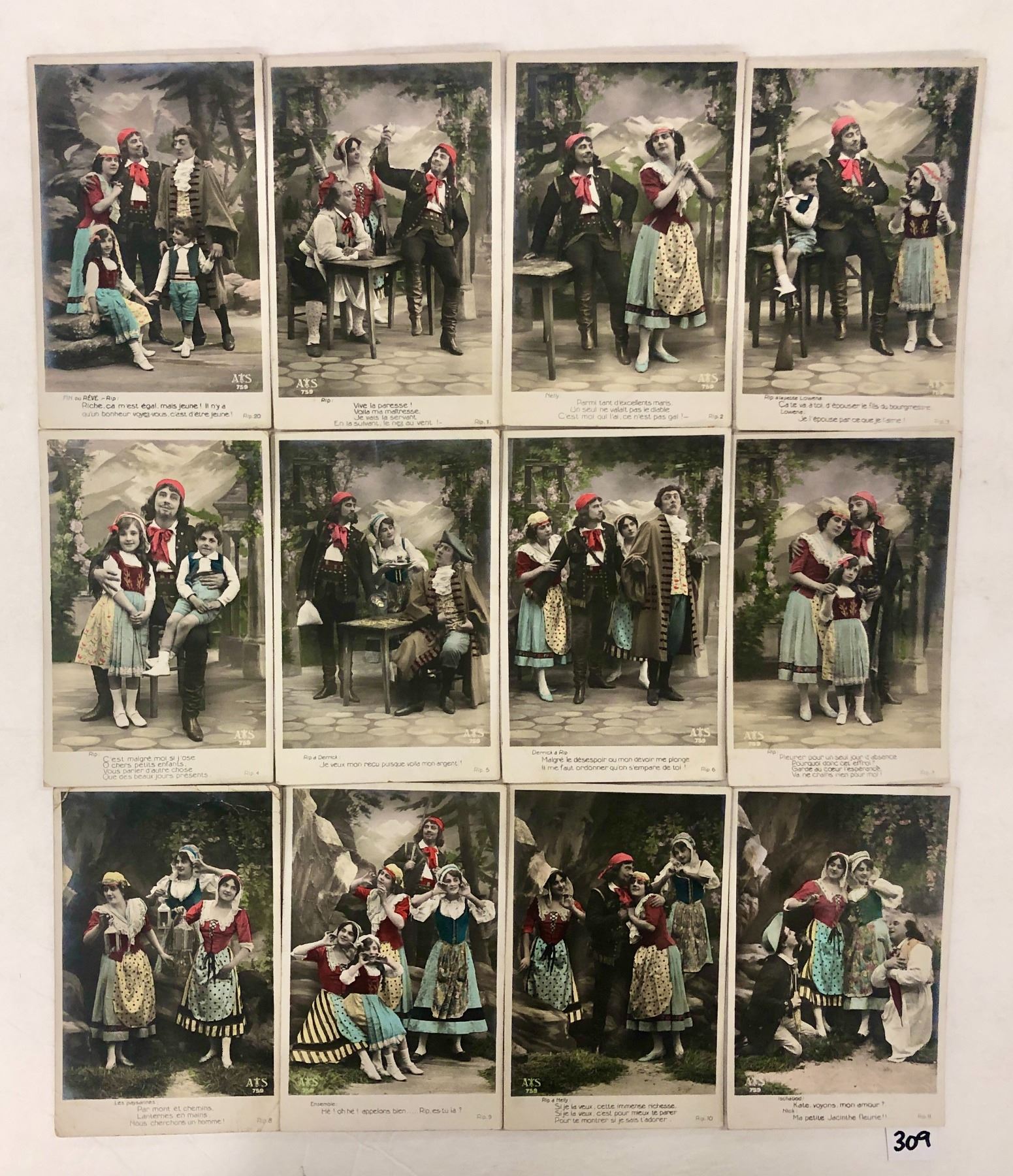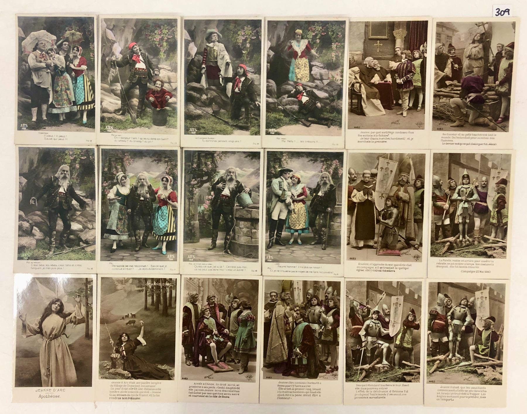 2 different sets of Opera tinted photos. One Joan of Arc set. Early.