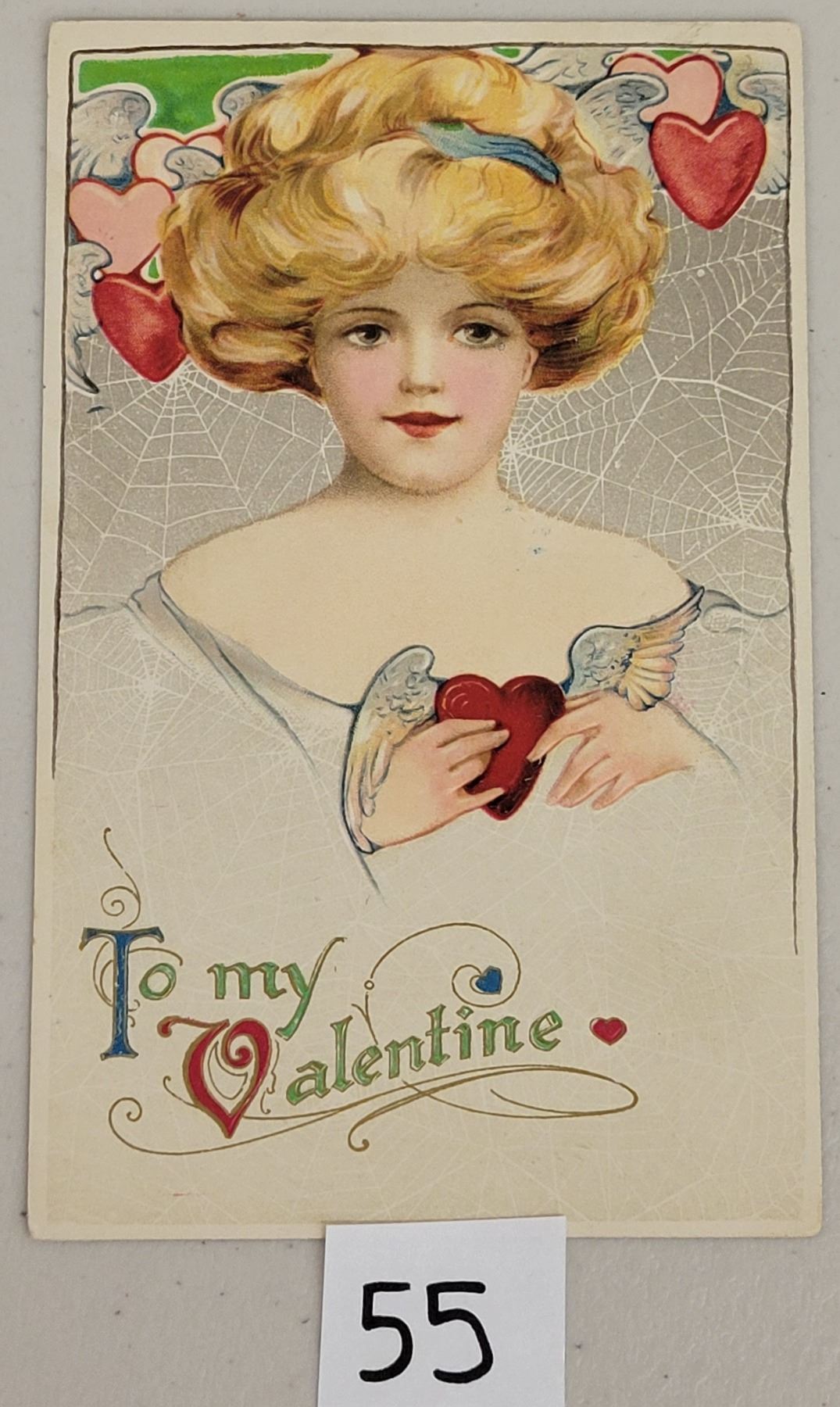 To My Valentine Winsch Schmucker Lady In Front of Web Postcard