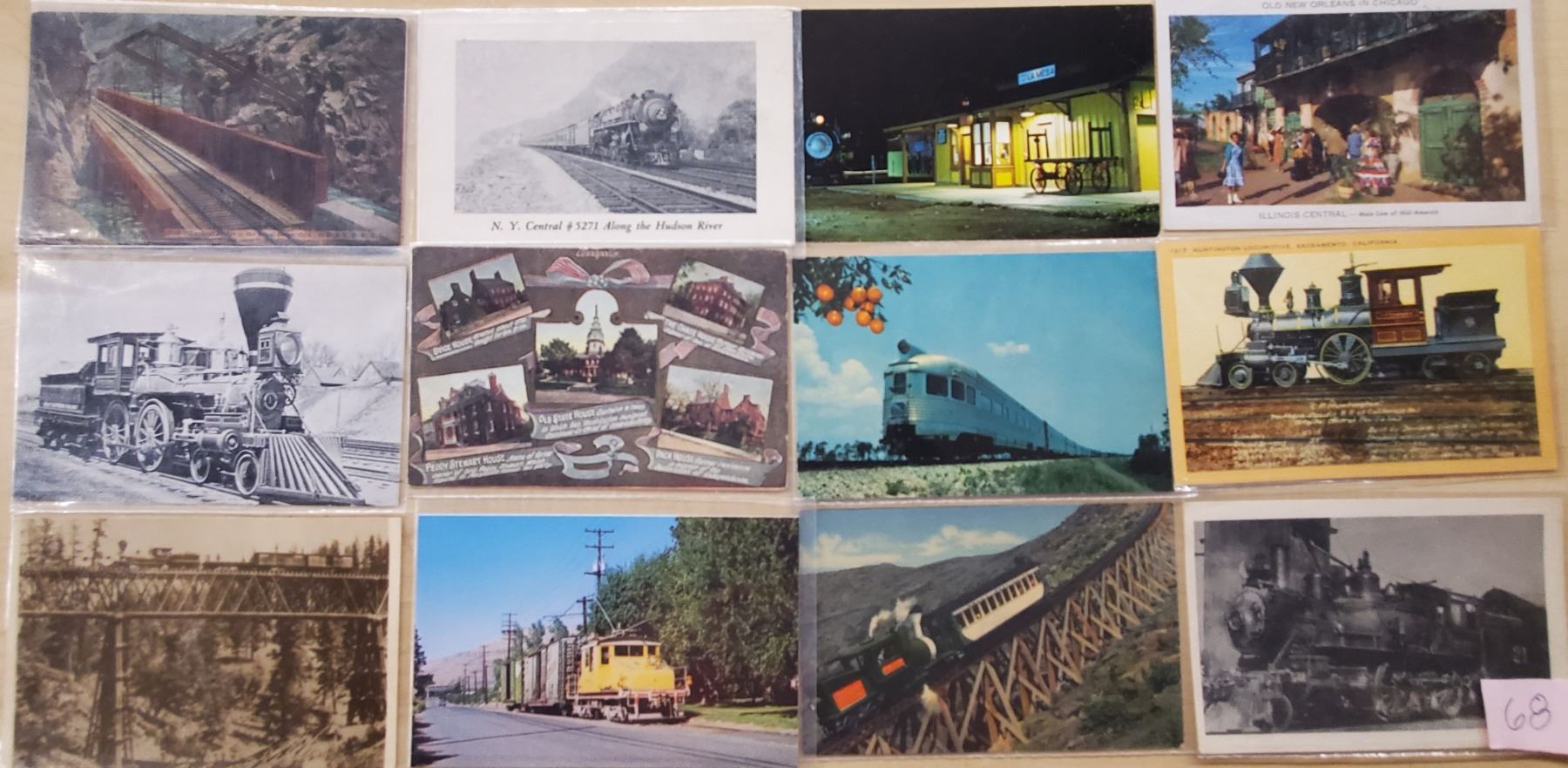 Approx. 500 cards. Early to standard size chrome, mostly standard size chrome. Trains, railroads, stations, etc.