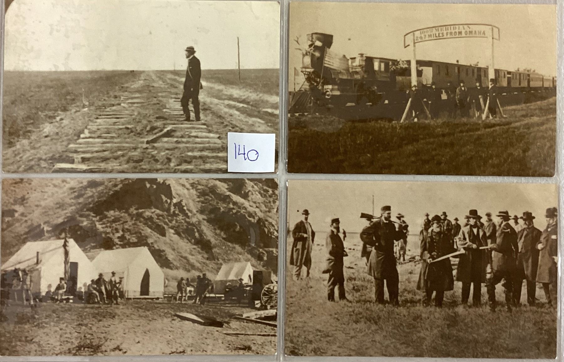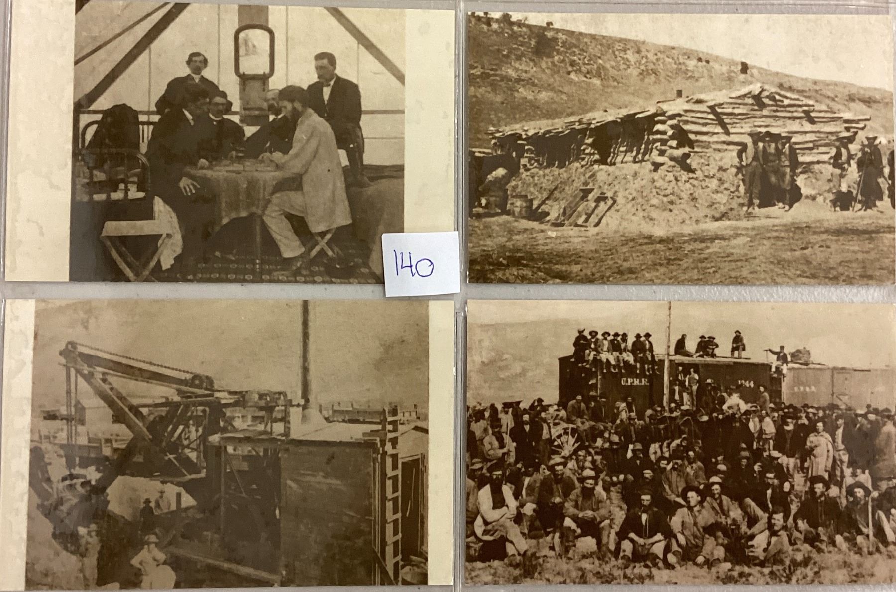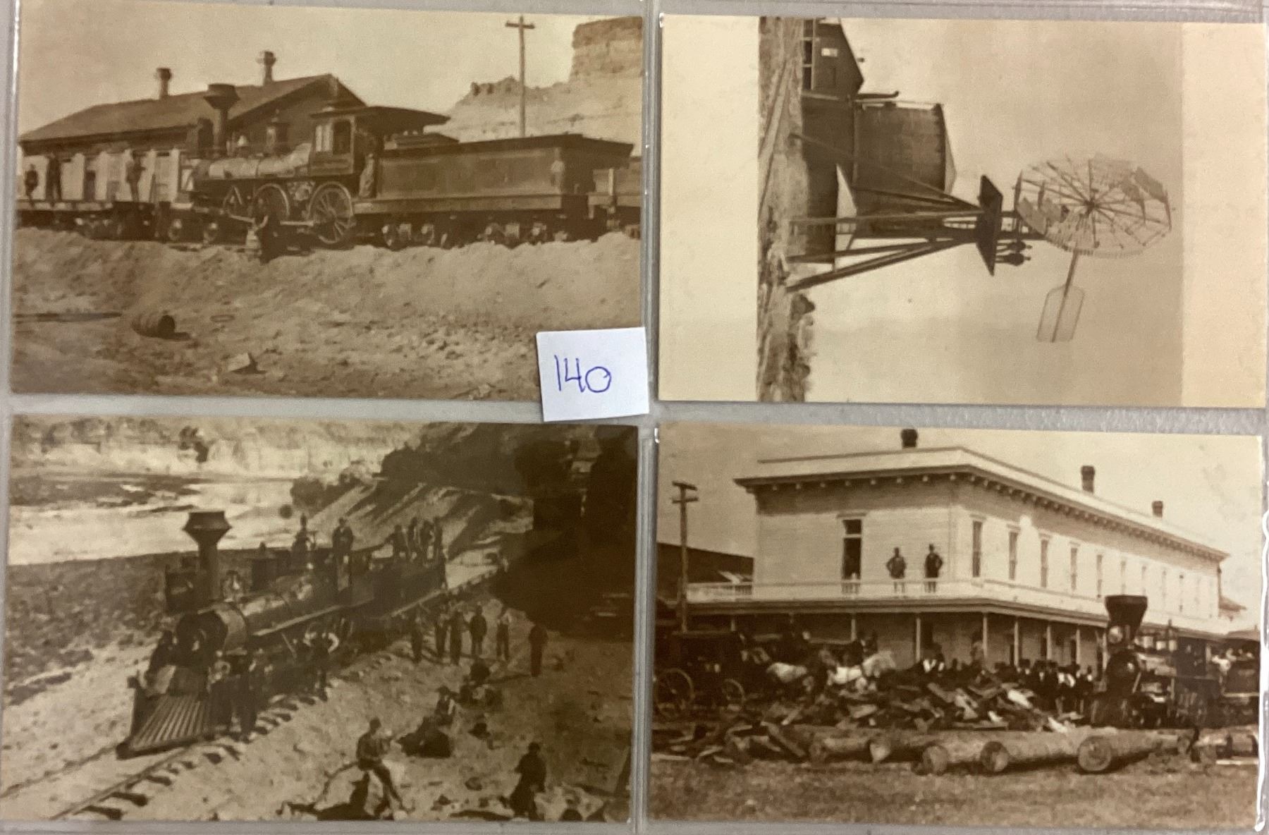 Complete set of 50 of Union Pacifac railroad. Sepia tone colored. Standard size chrome. Trains, interiors, exteriors, shipping, 1st rail, pay tent, etc.