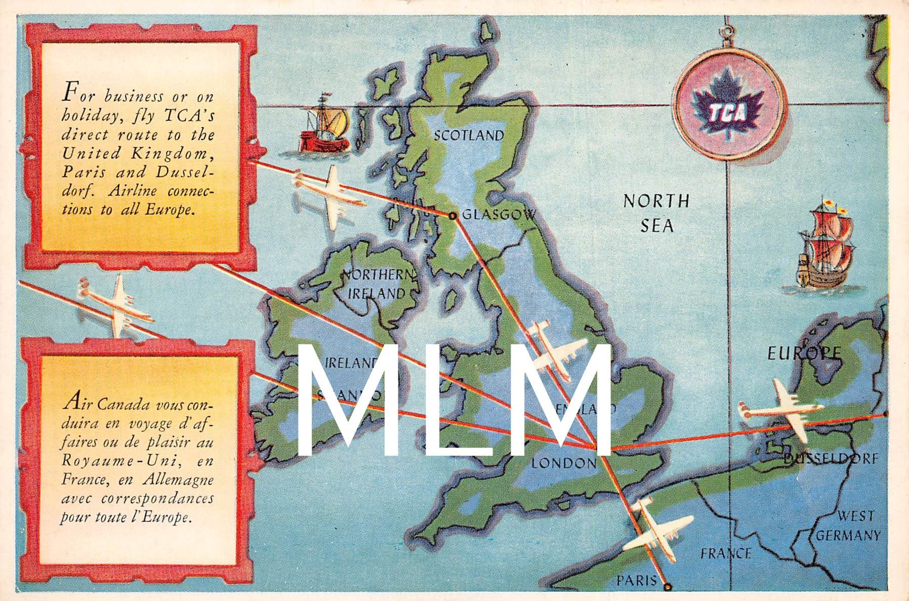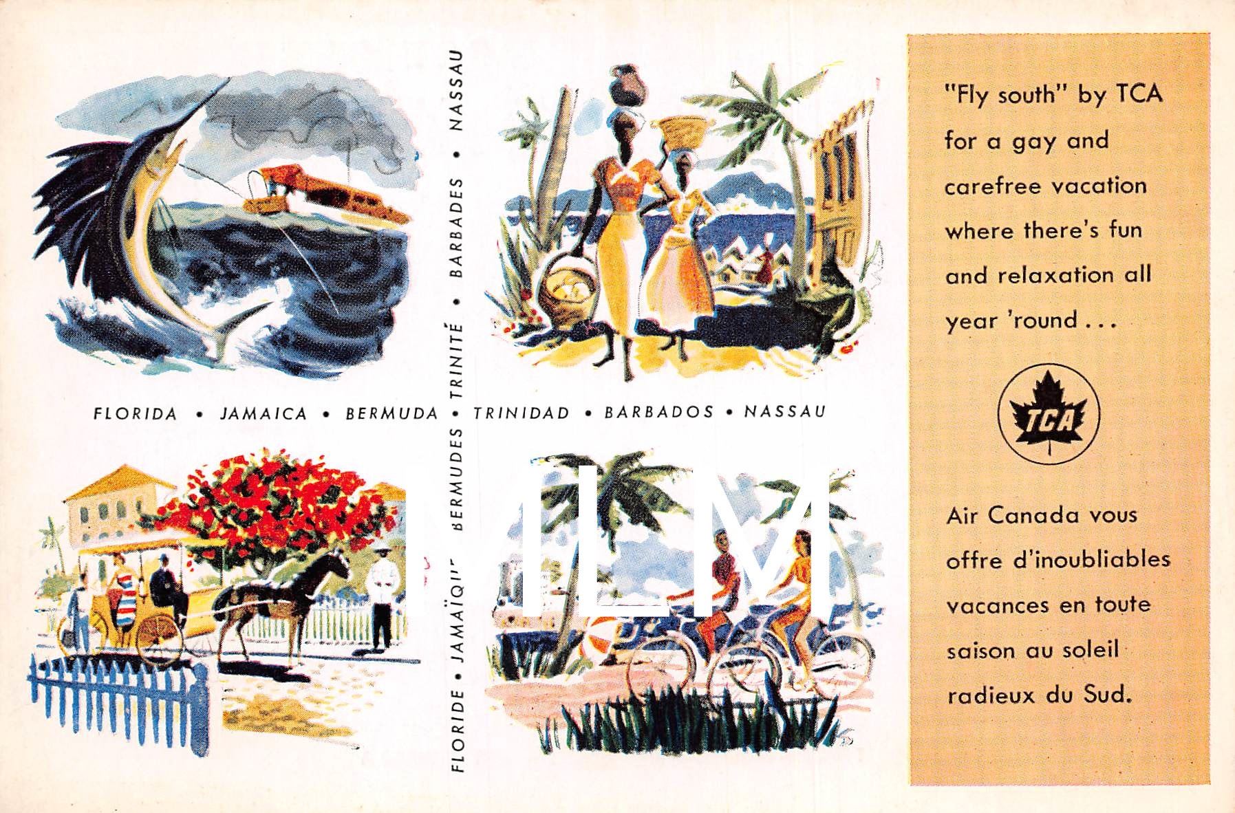 6 vintage Canada Airlines advertising postcards. Over sized. Vintage.