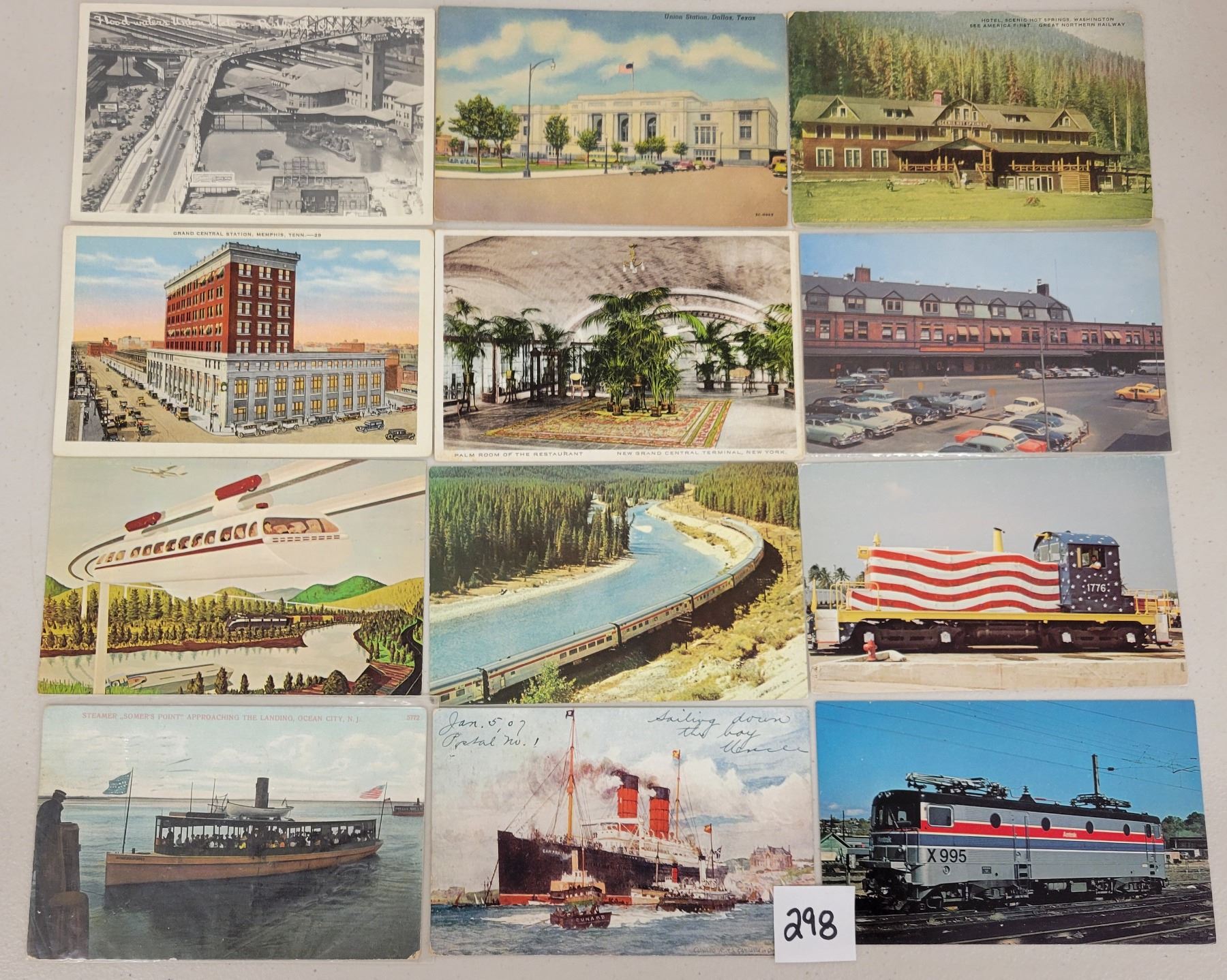 Over 115 transportation postcards. Early to standard size chrome.