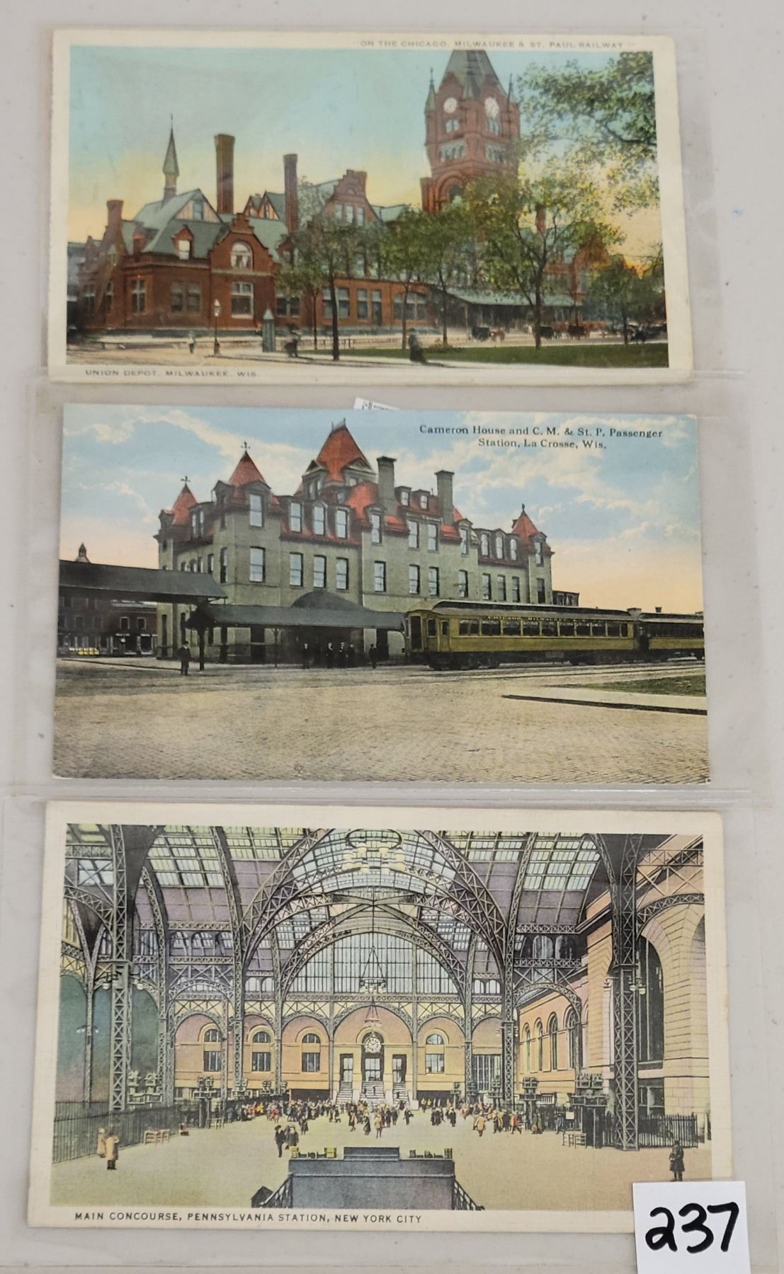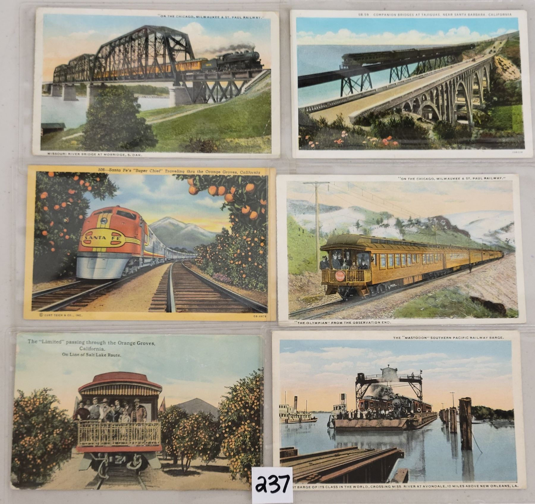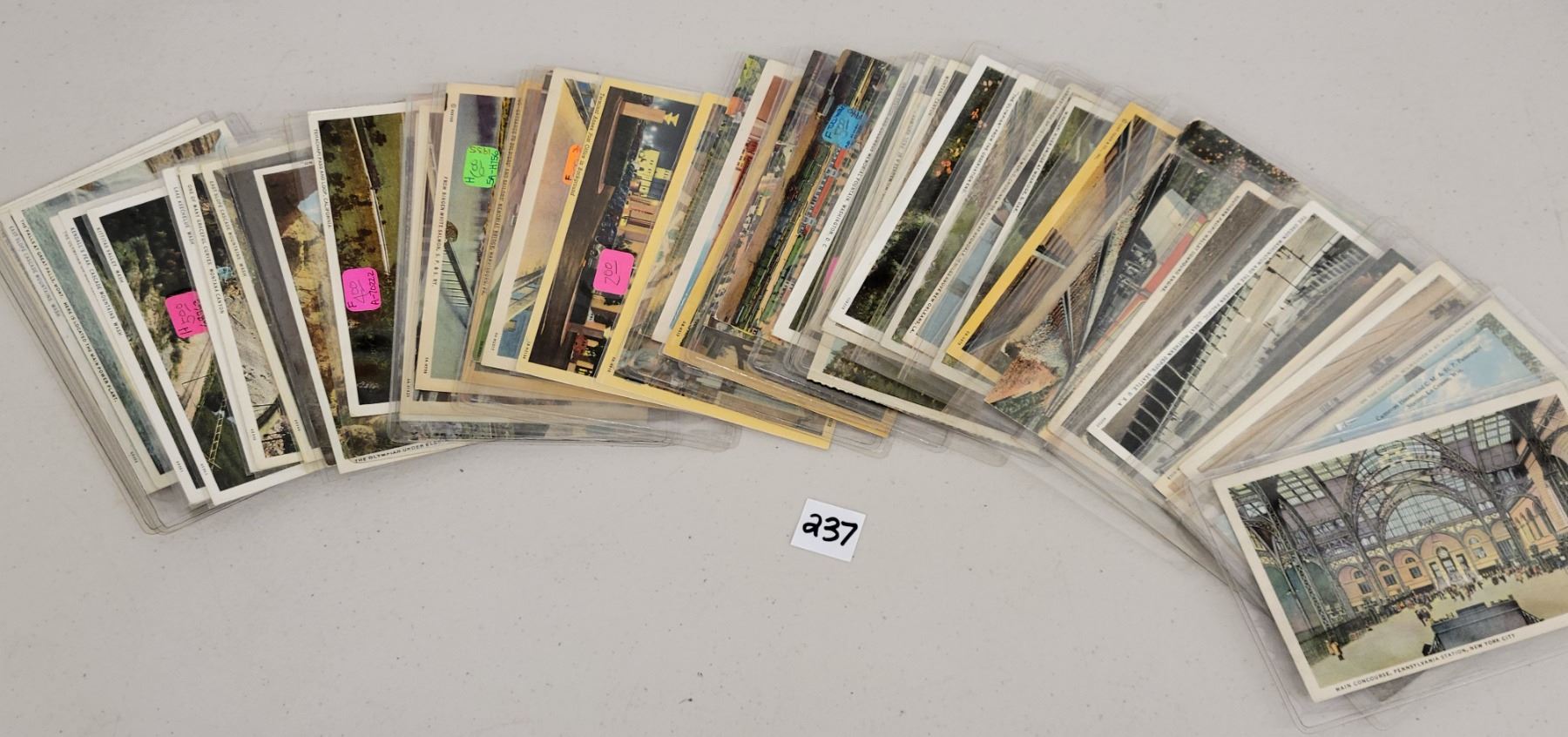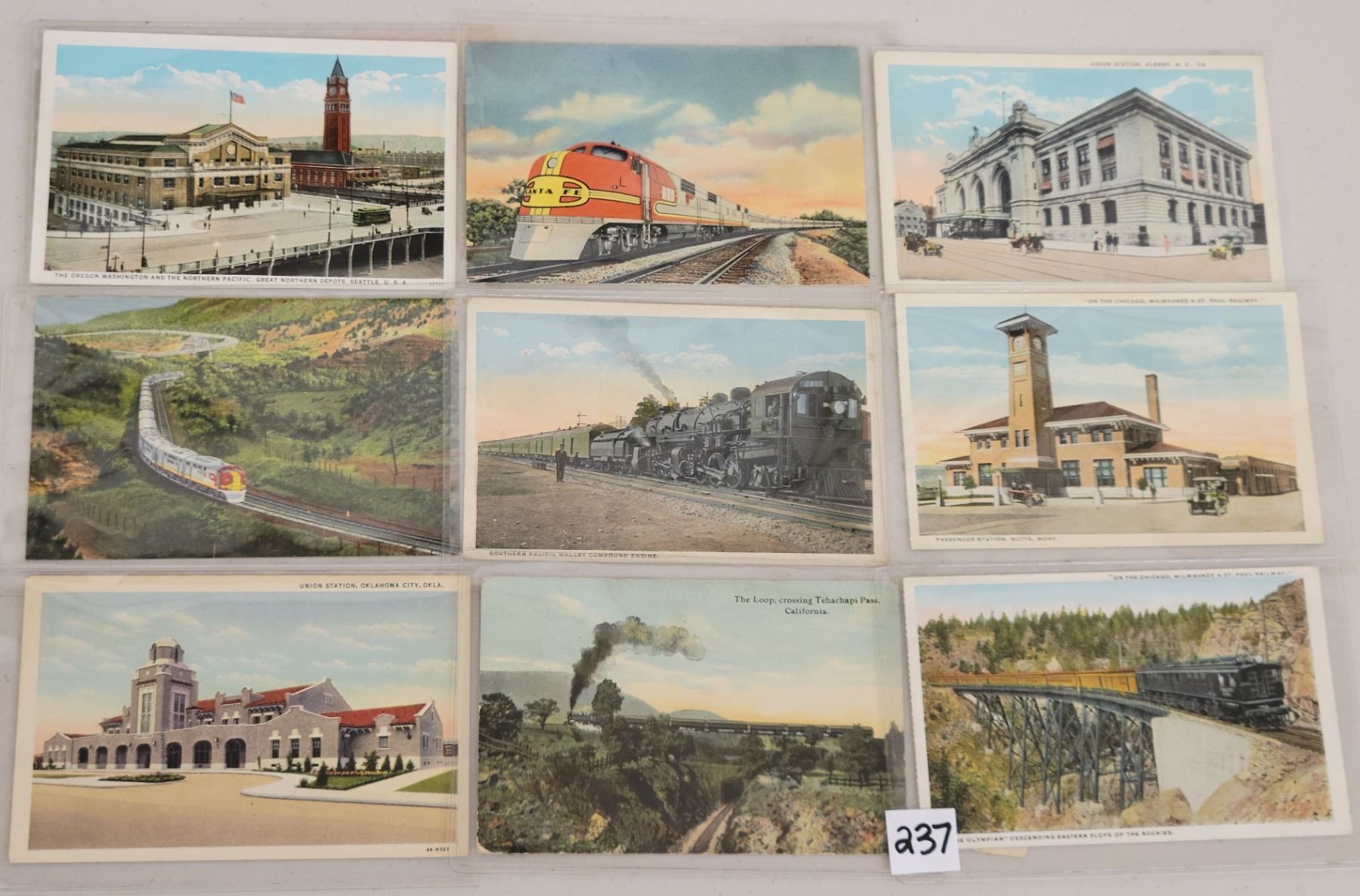 Over 45 train related postcards. Early to linen.