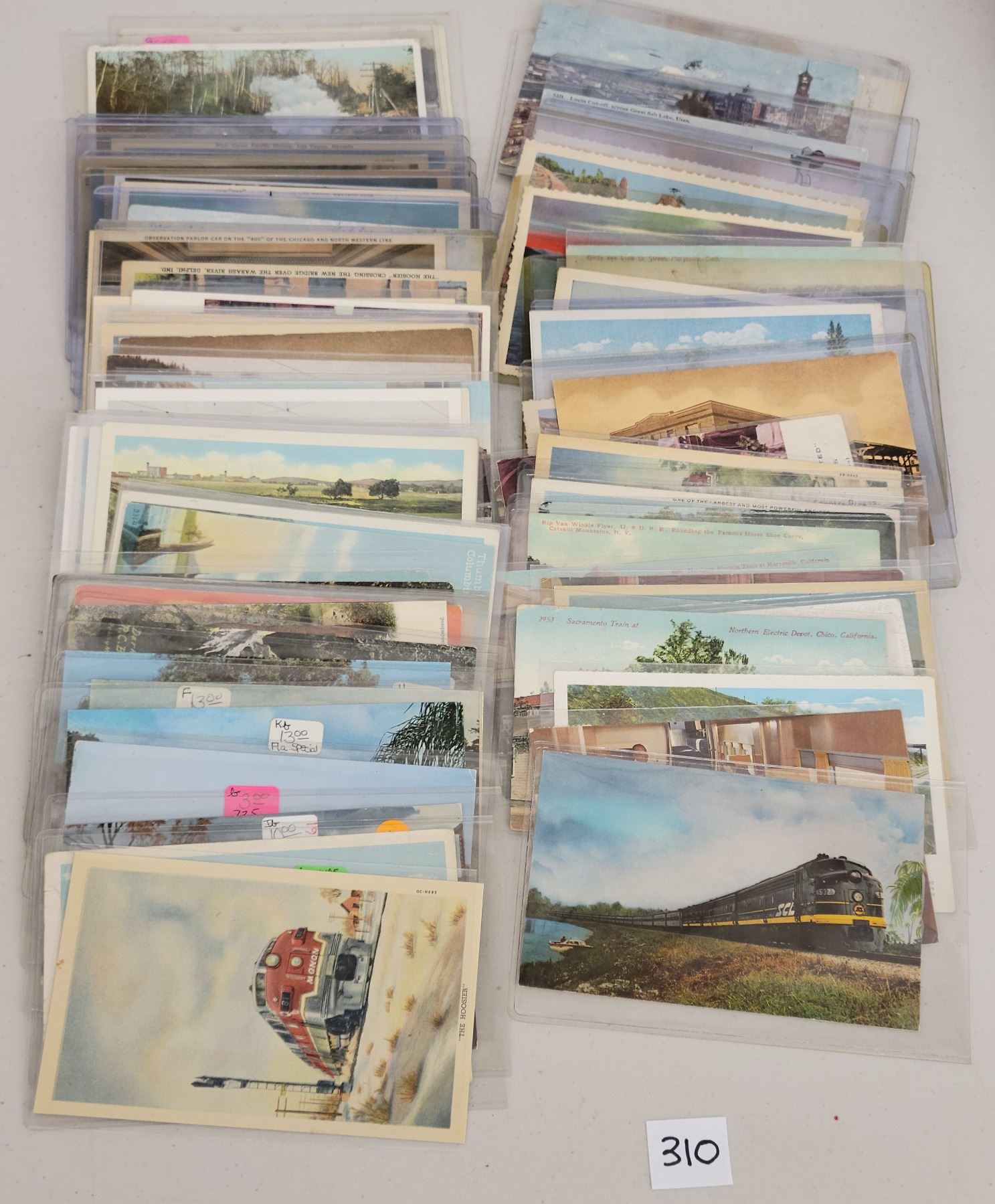 Approx. 80 train postcards. Early to standard size chrome. Mostly pre chrome.