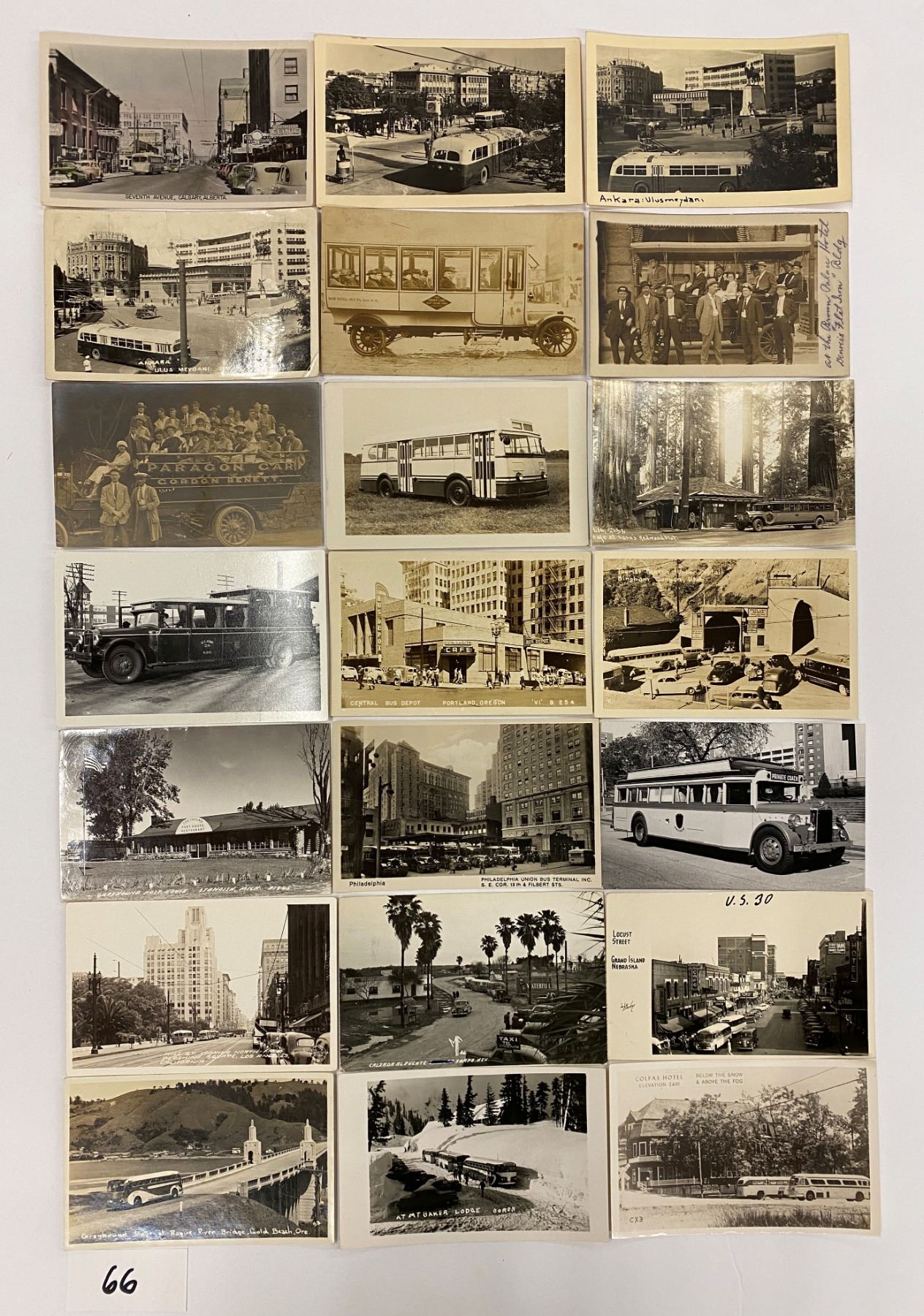 Over 30 real photo bus postcards.