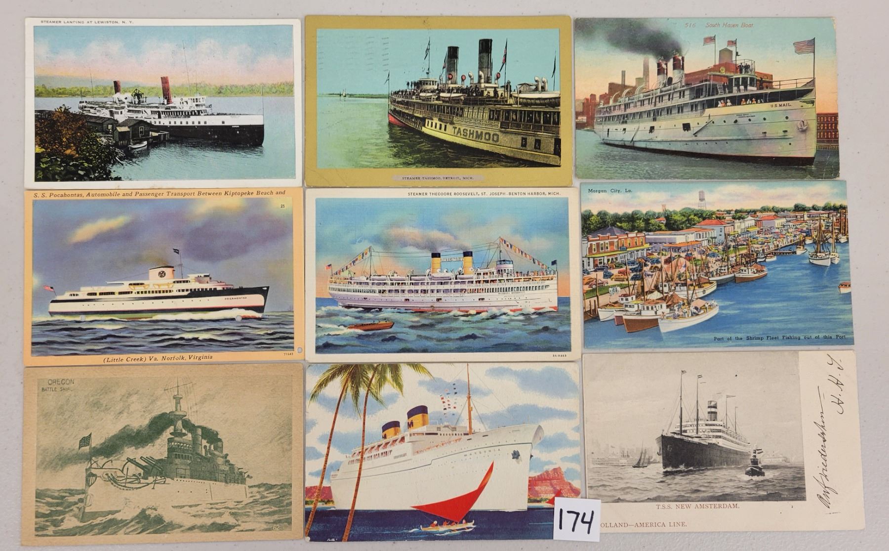 Approx. 300 postcards of boats & ships. Early to chrome. Mostly pre continental chrome.
