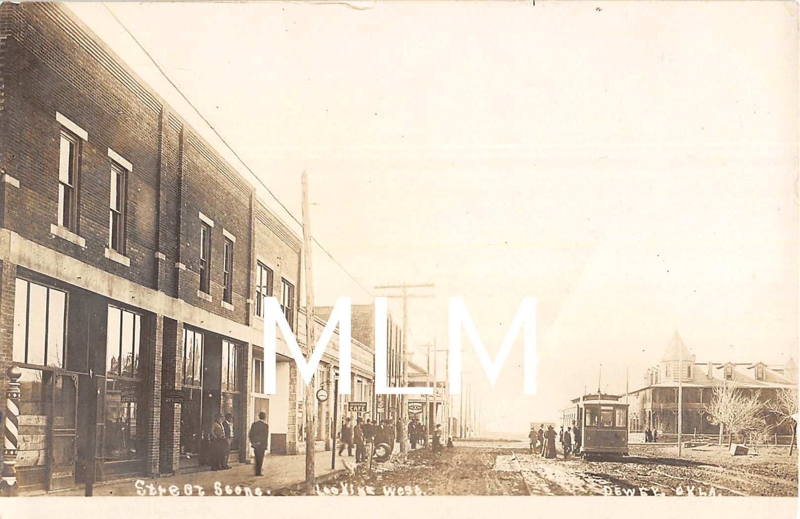 Trolley Street Scene Dewey, Oklahoma Photo Postcard