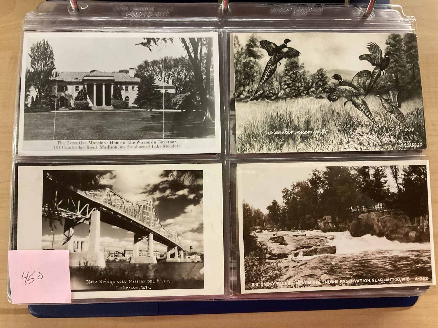 Album over 140 real photo postcards from all over US. All identified. Nebraska, Dakotas, Wisconsin, Missouri and other states.
