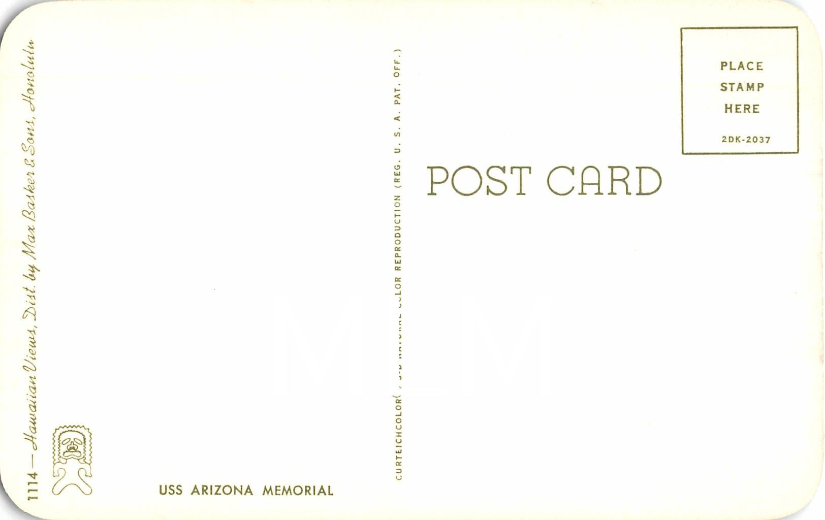 USS Arizona Memorial Pearl Harbor Vintage Postcard
