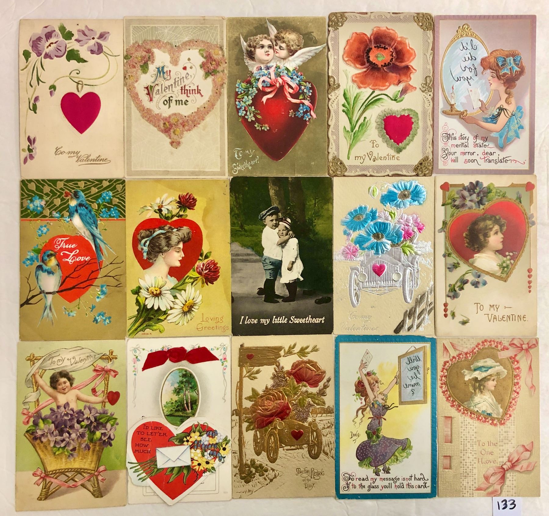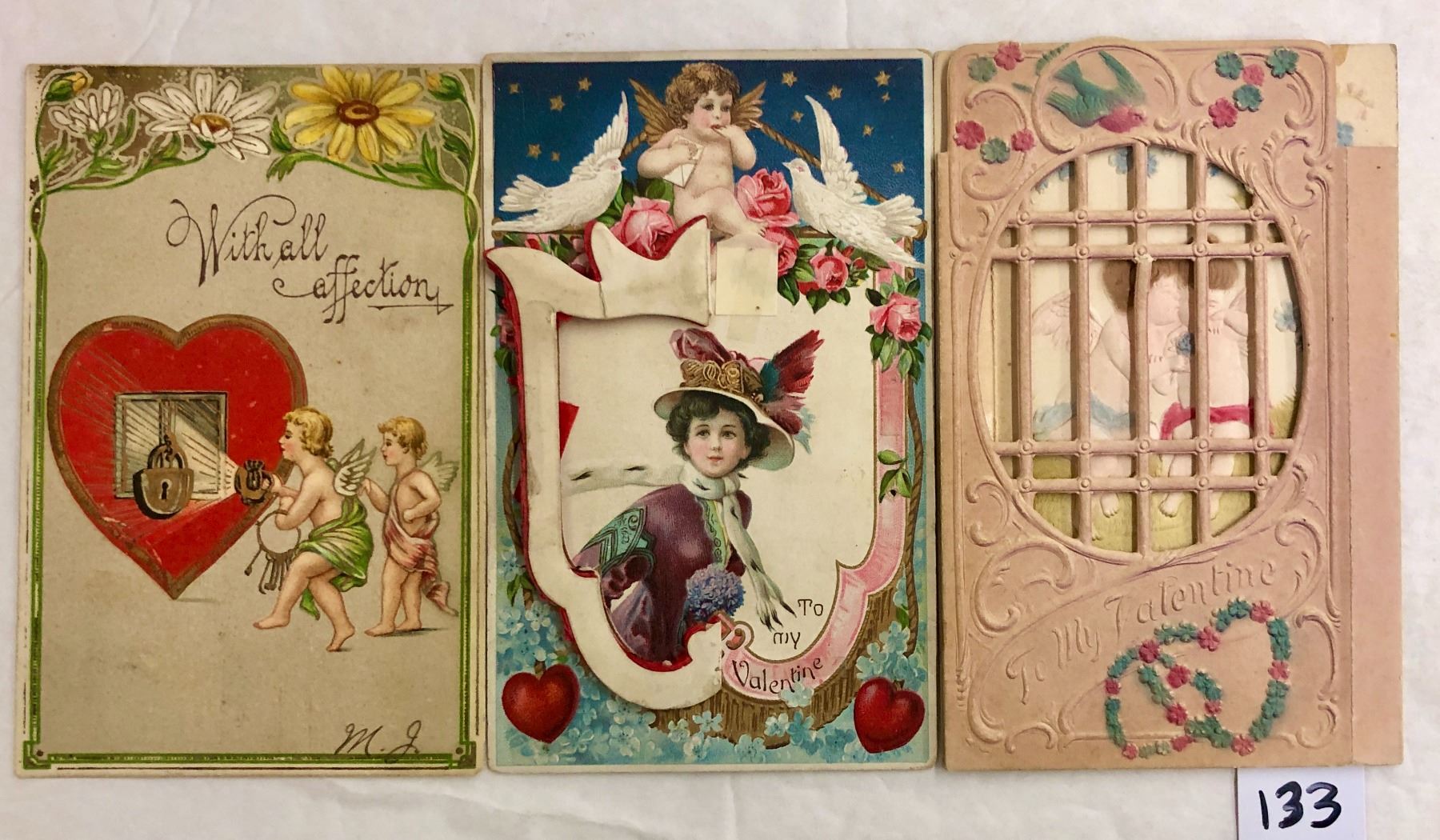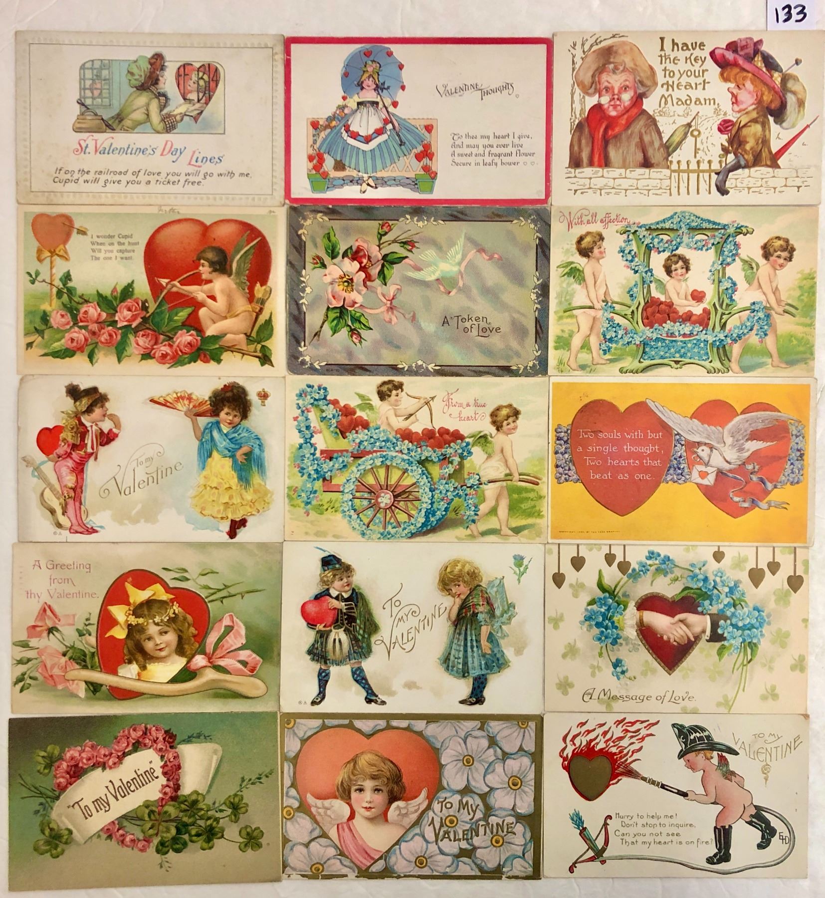38 Valentine postcards. Some novelty, 1 mechanical.