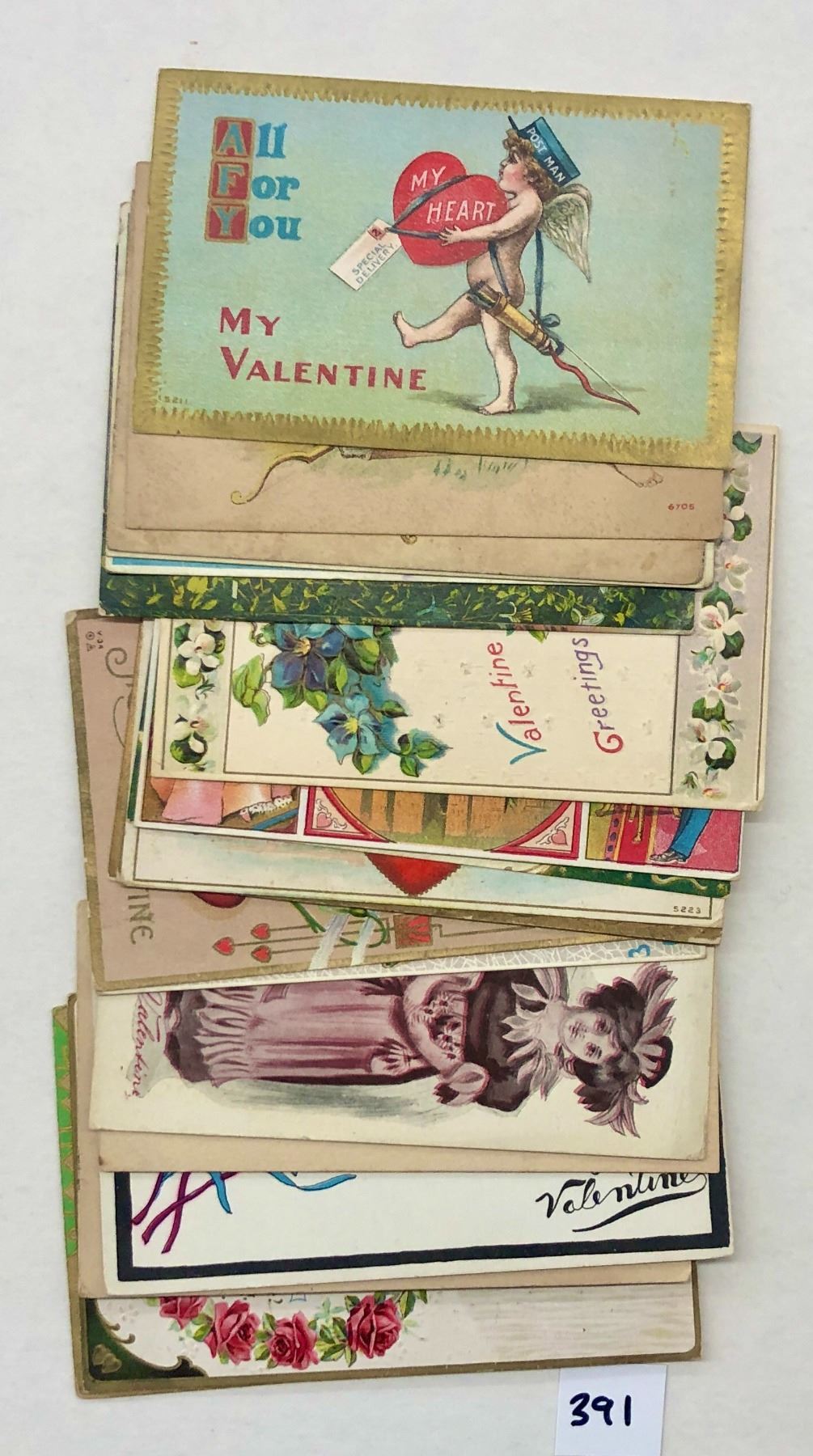 Over 40 Valentine postcards. Early. Cupid, children, lovers, etc.