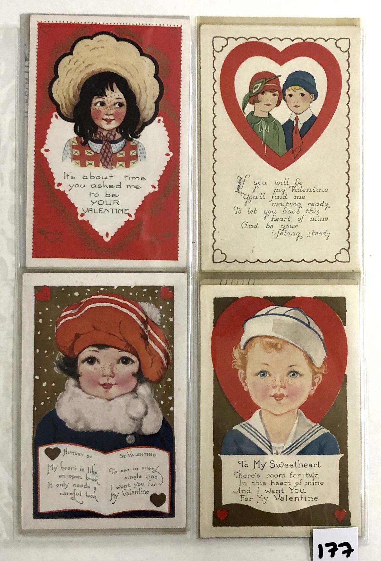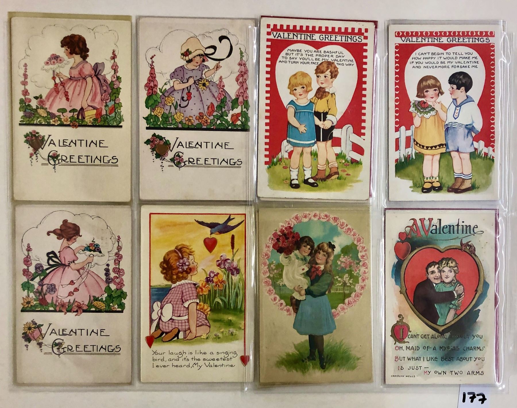 Approx. 30 Valentine postcards. Some partial sets, children, publishers, etc.