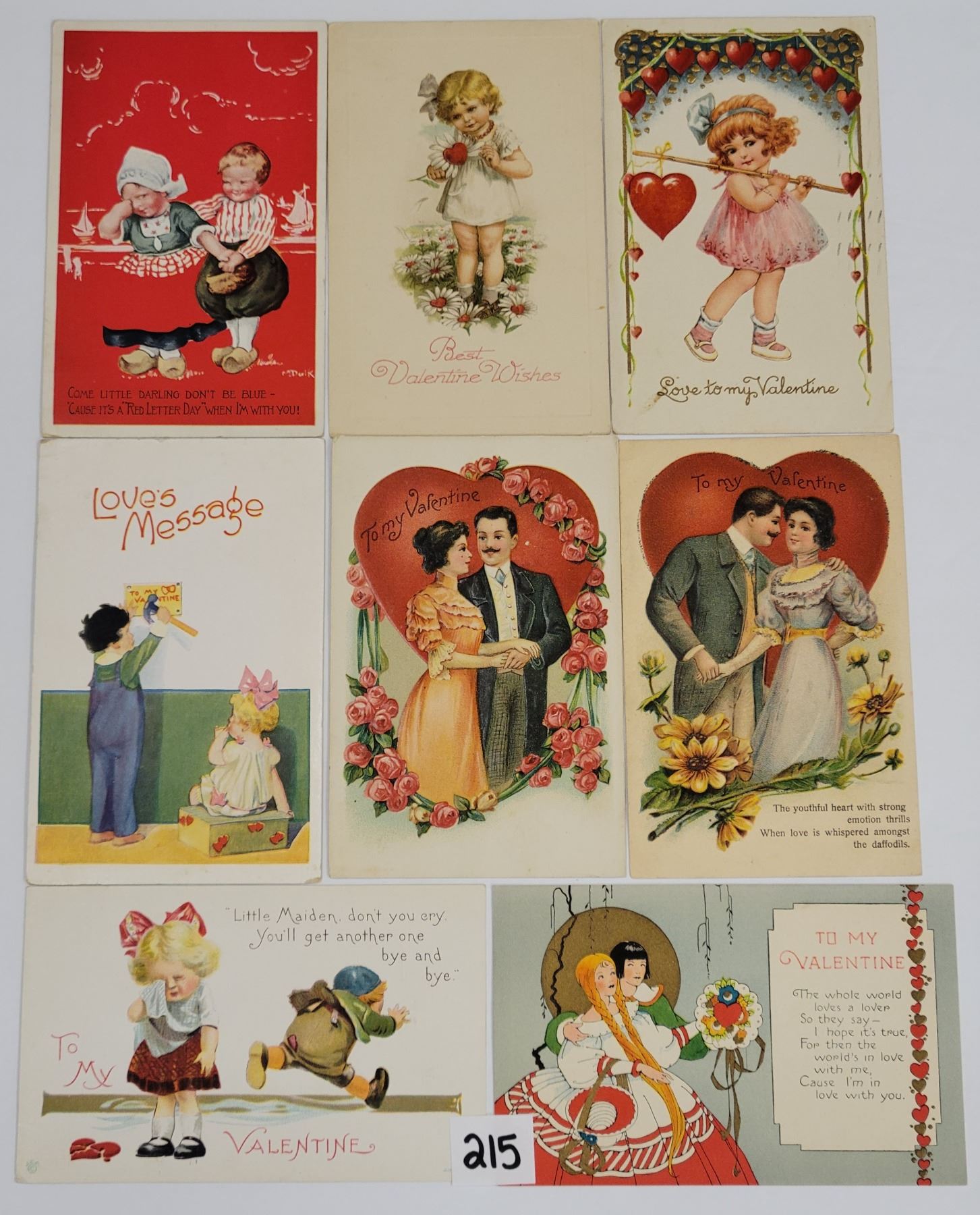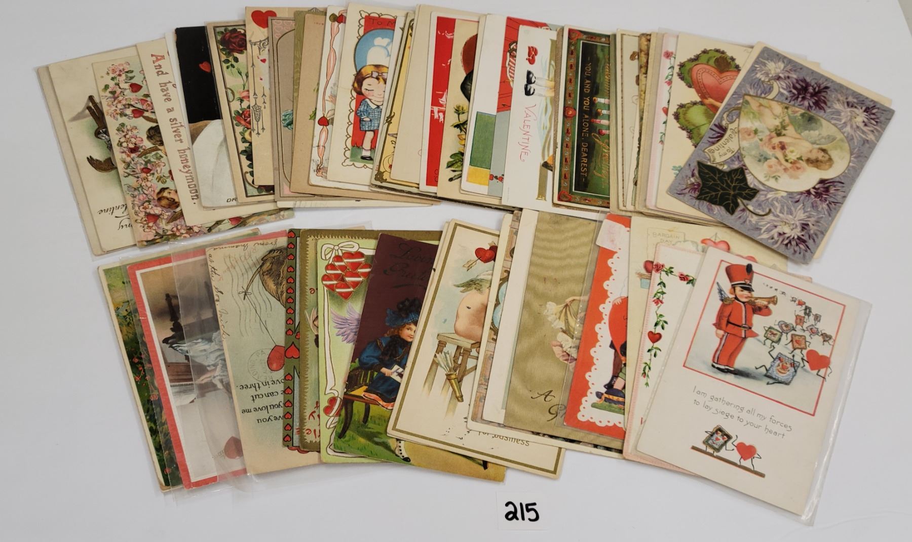 Approx. 55 Valentine postcards. Cupid, angels, children, ladies, publishers, etc.