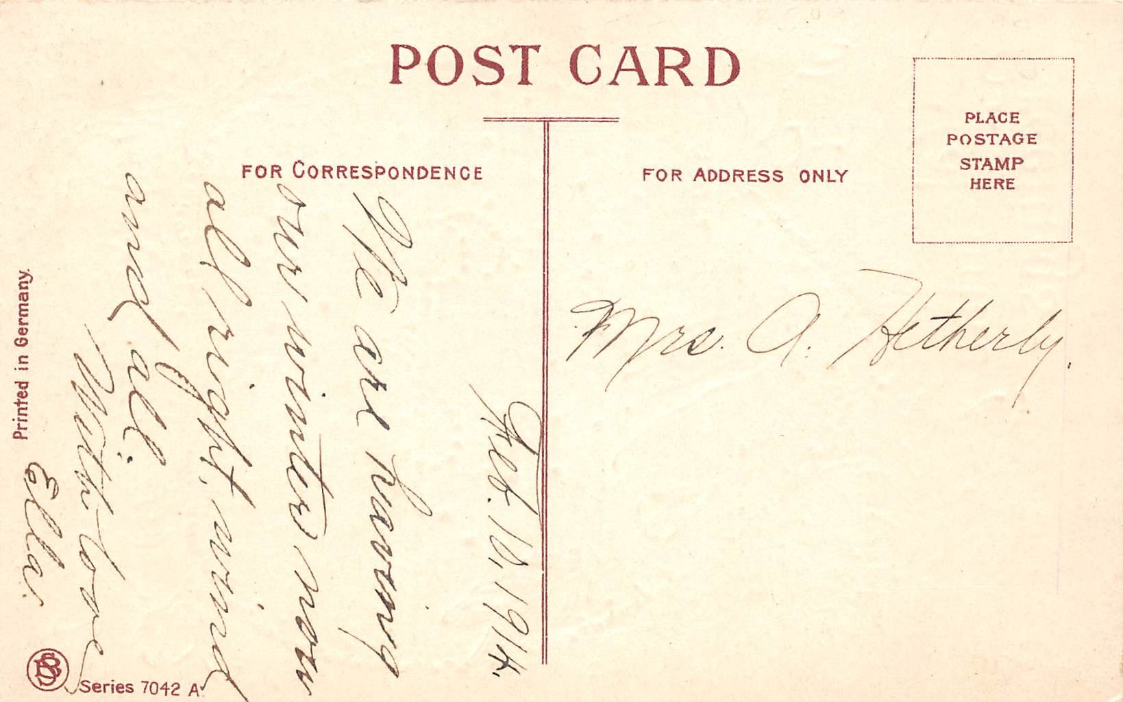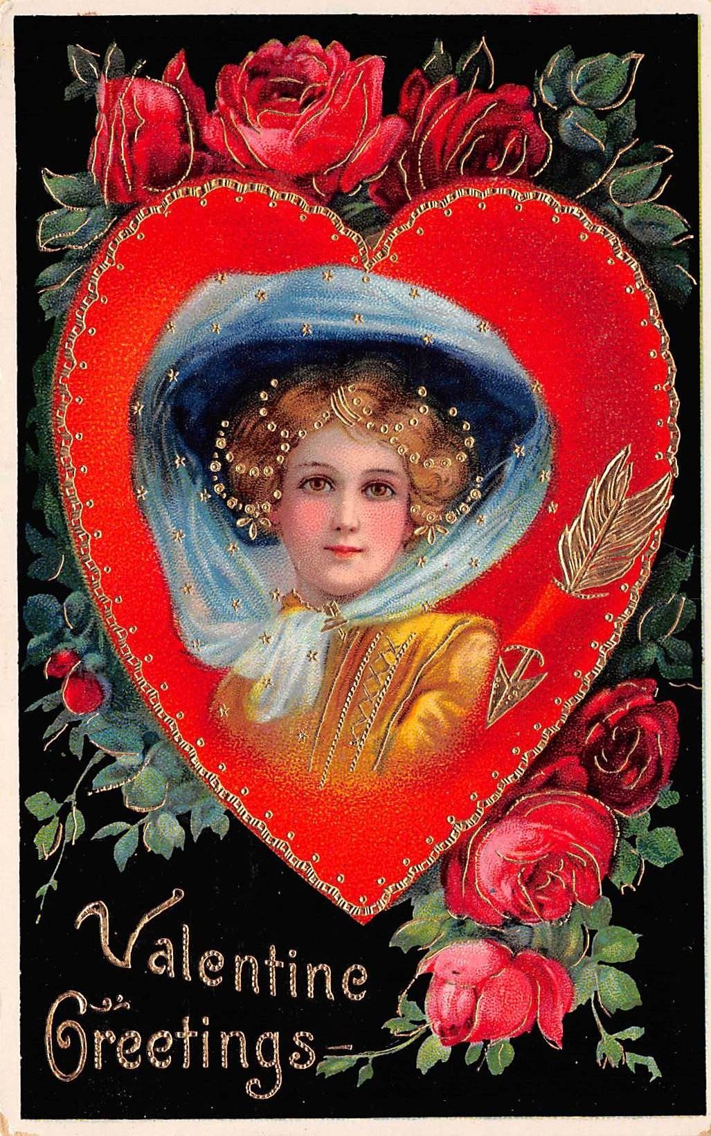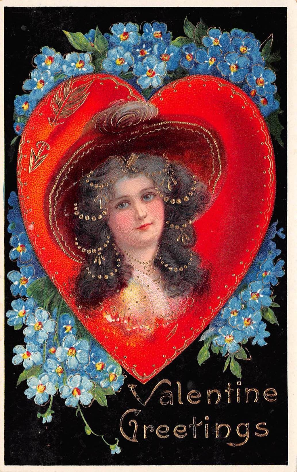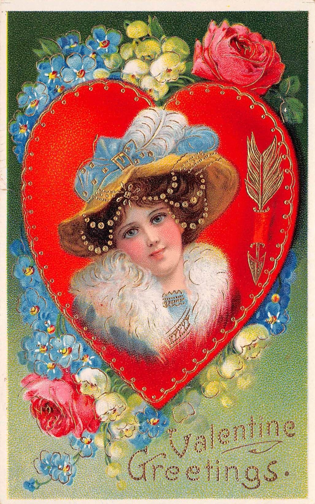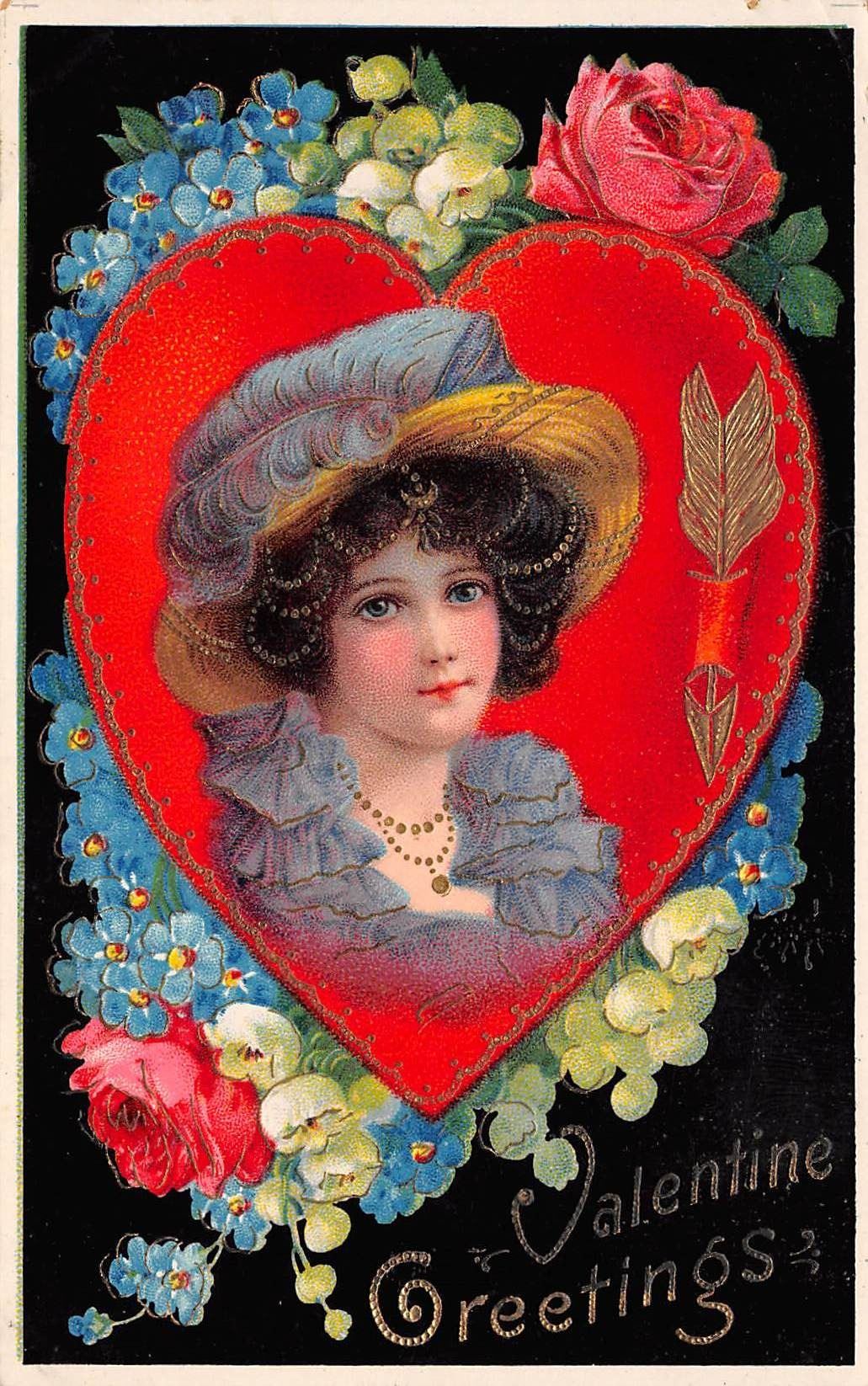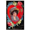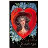 Set of 4 Ladies in Heart with hats, Valentine postcards.