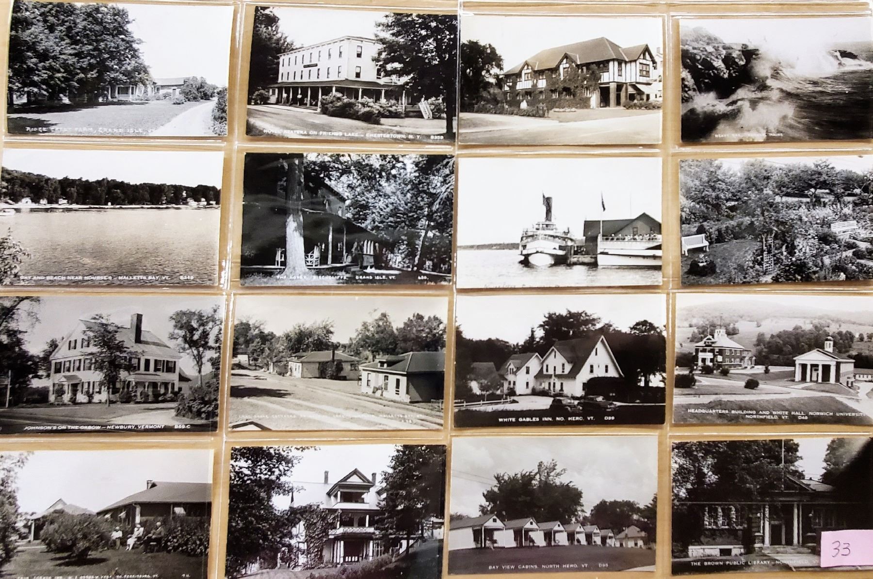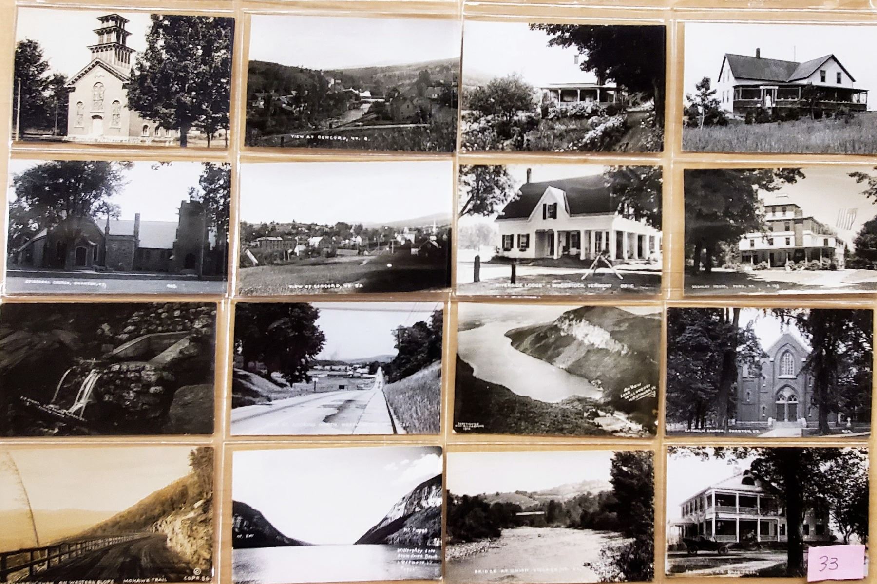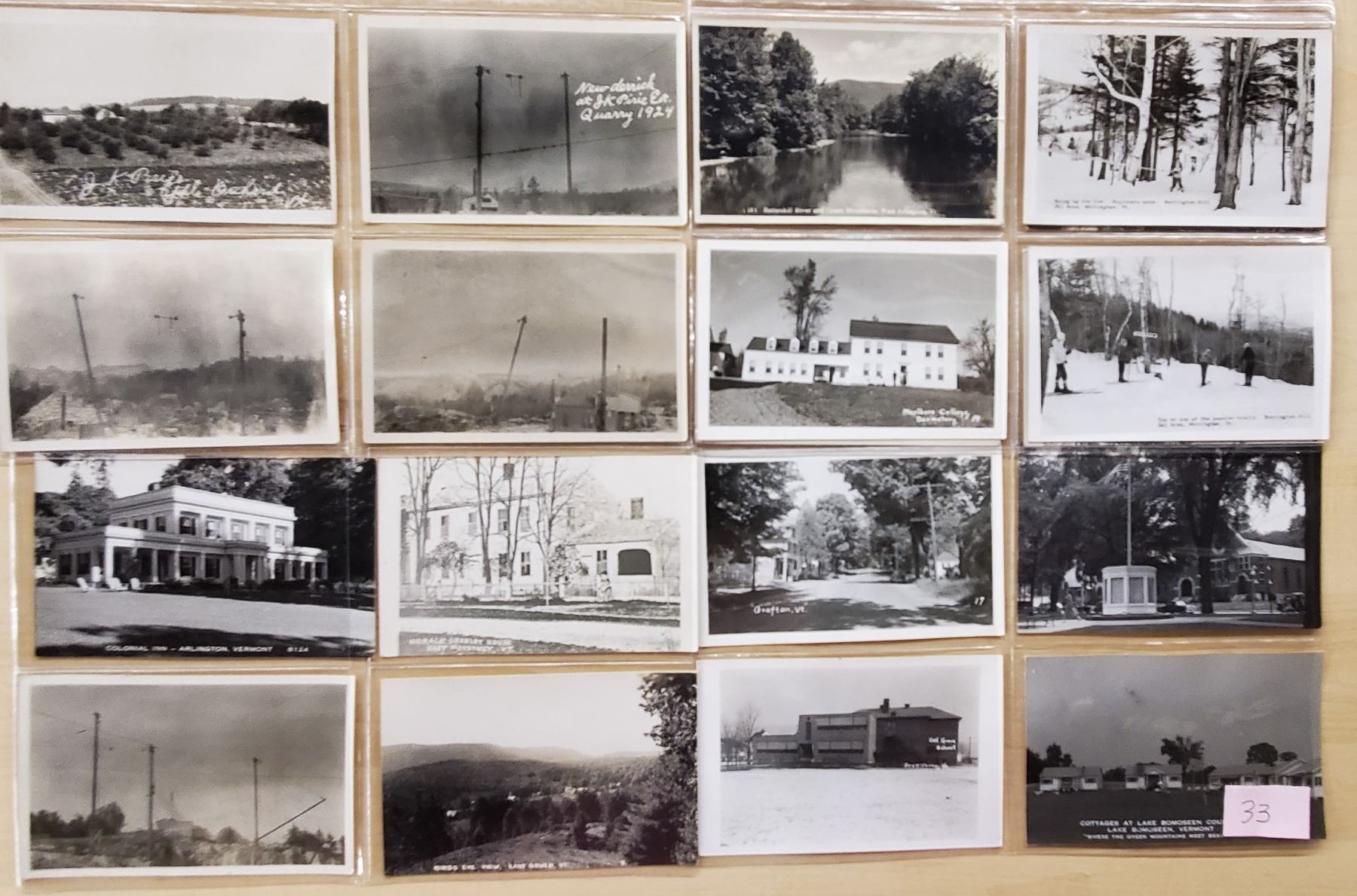 Over 90 real photo Vermont postcards. Dozens of towns. Churches, buildings, scenes, etc.