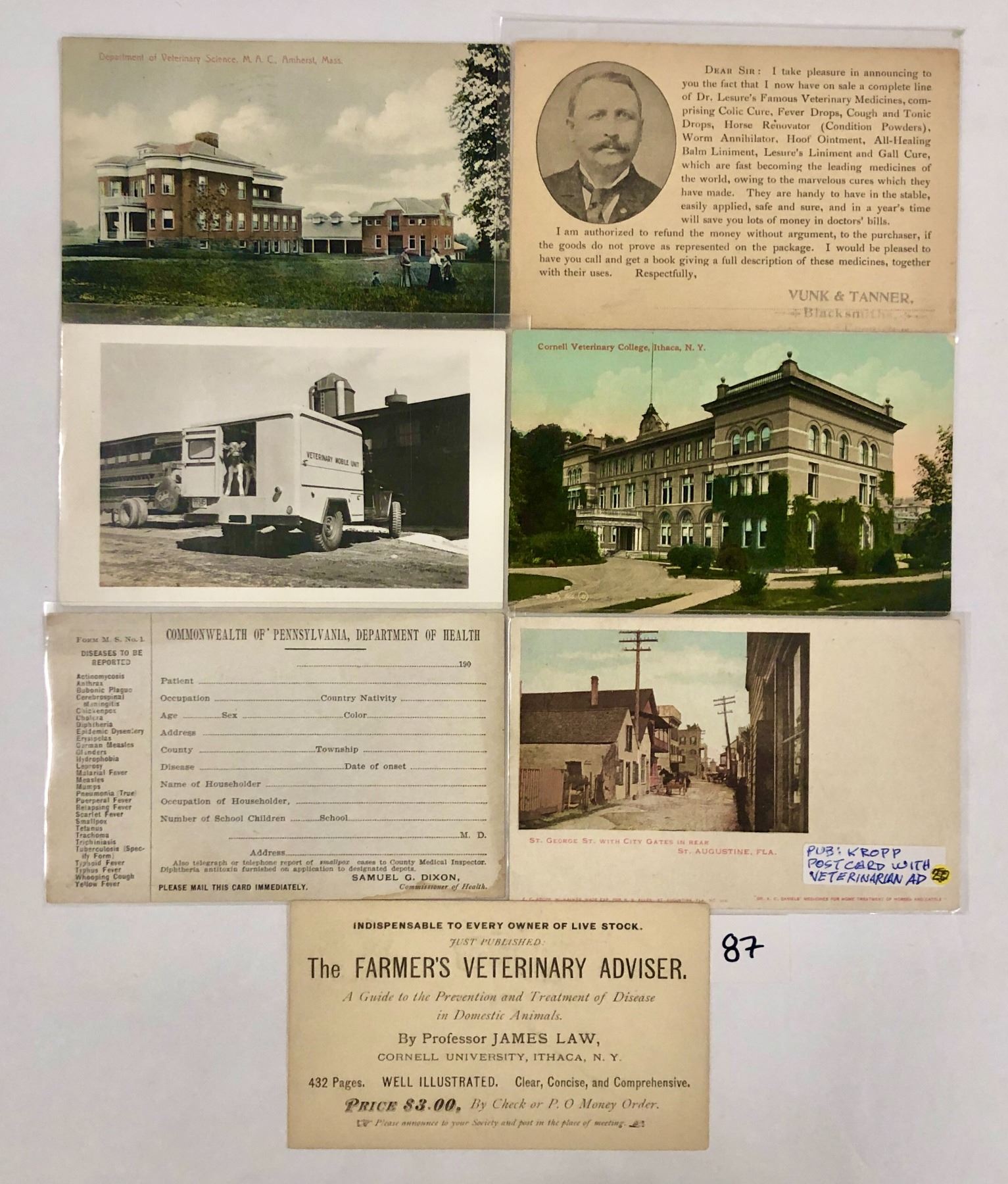 7 veterinarian related postcards. Early.