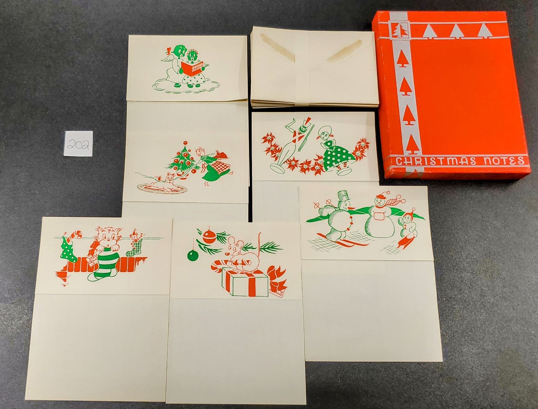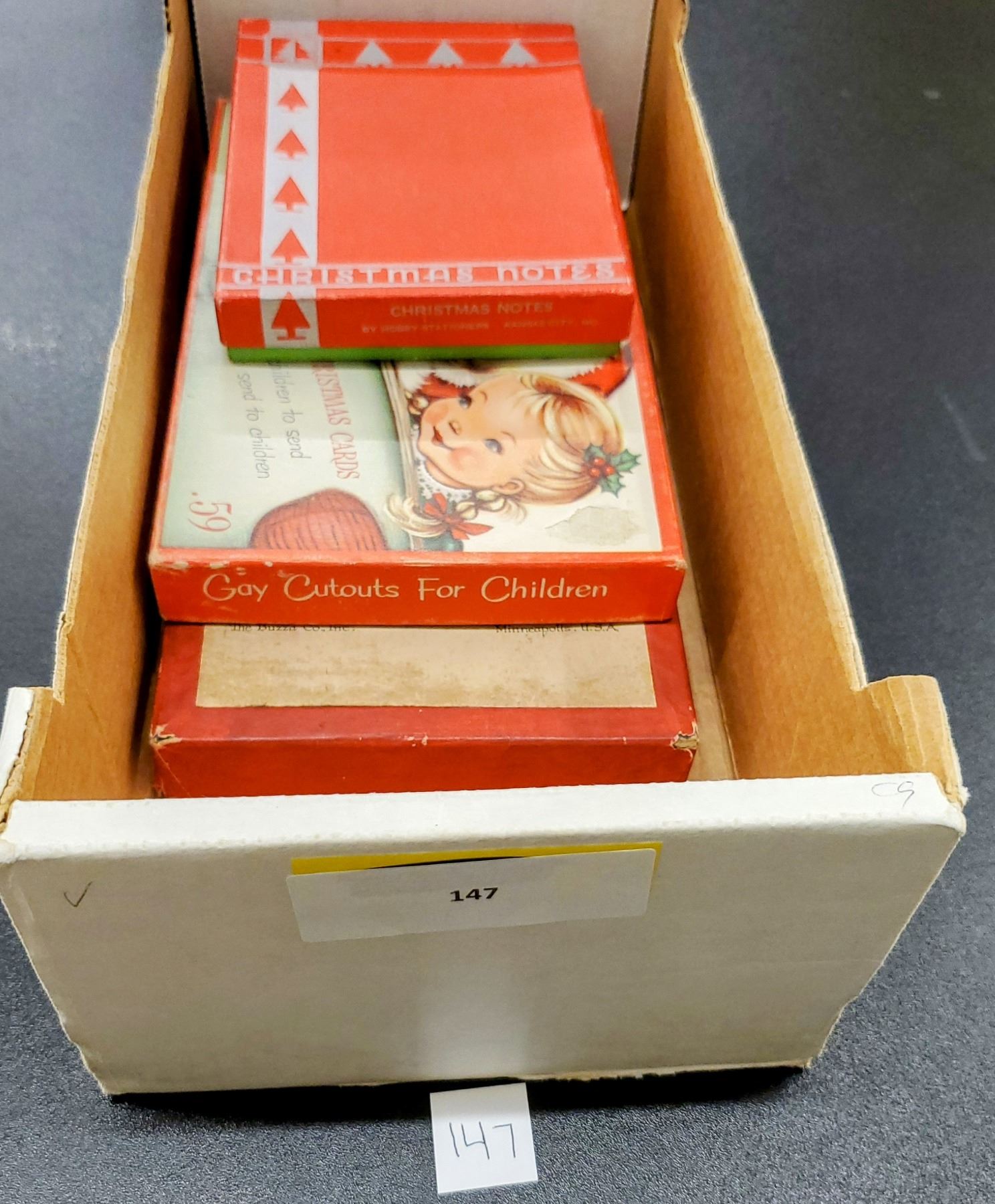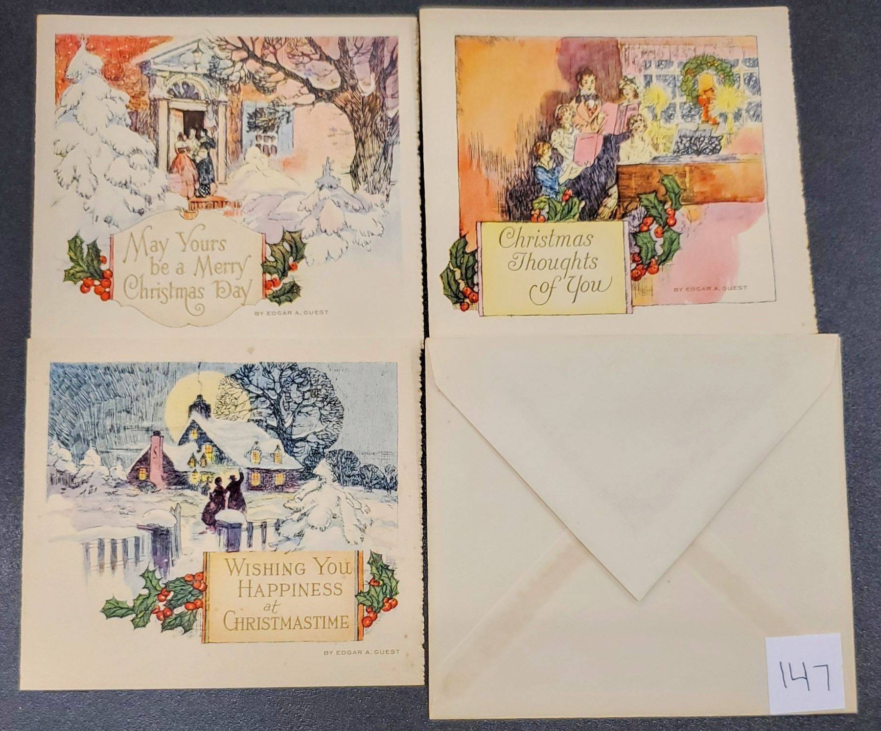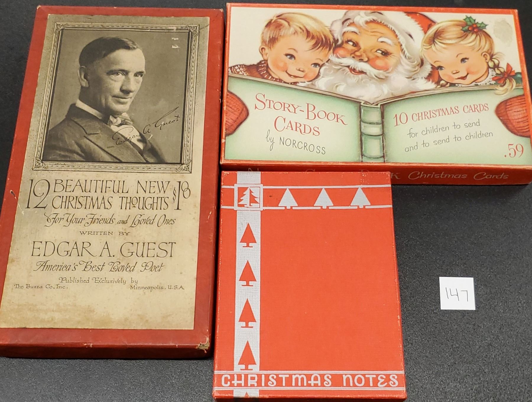 A group of 3 boxes of Christmas greeting cards. 33 cards total.