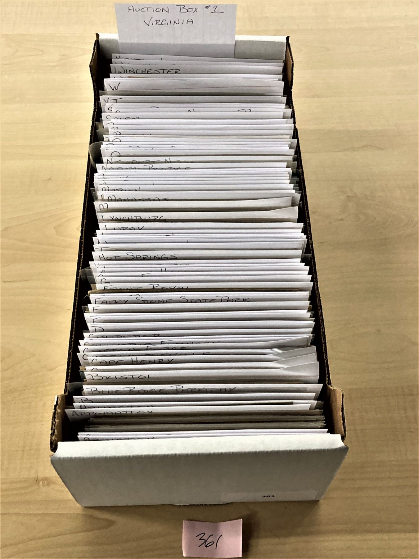 Sorted box of over 500 cards. Over 70 towns. Mostly early to linen.