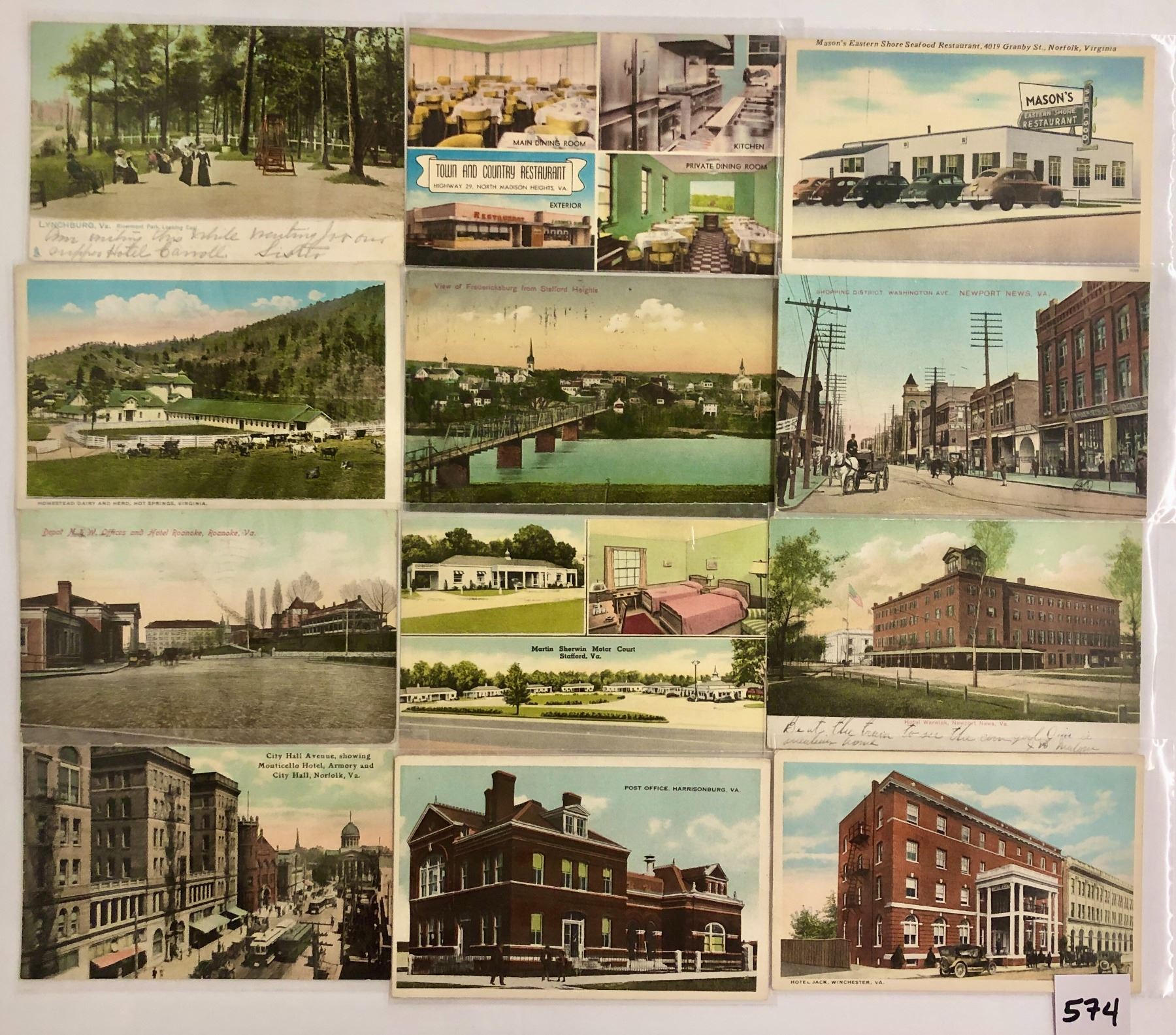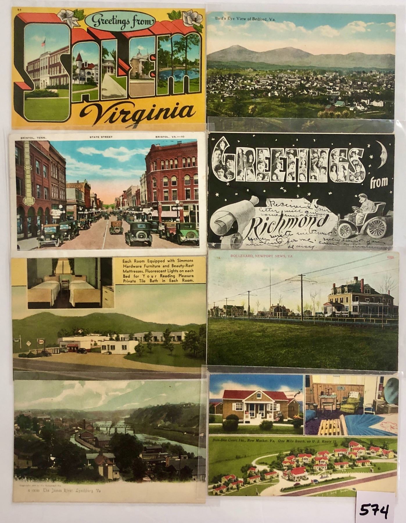 Over 60 VA postcards. Early to linen, a few standard size chrome.