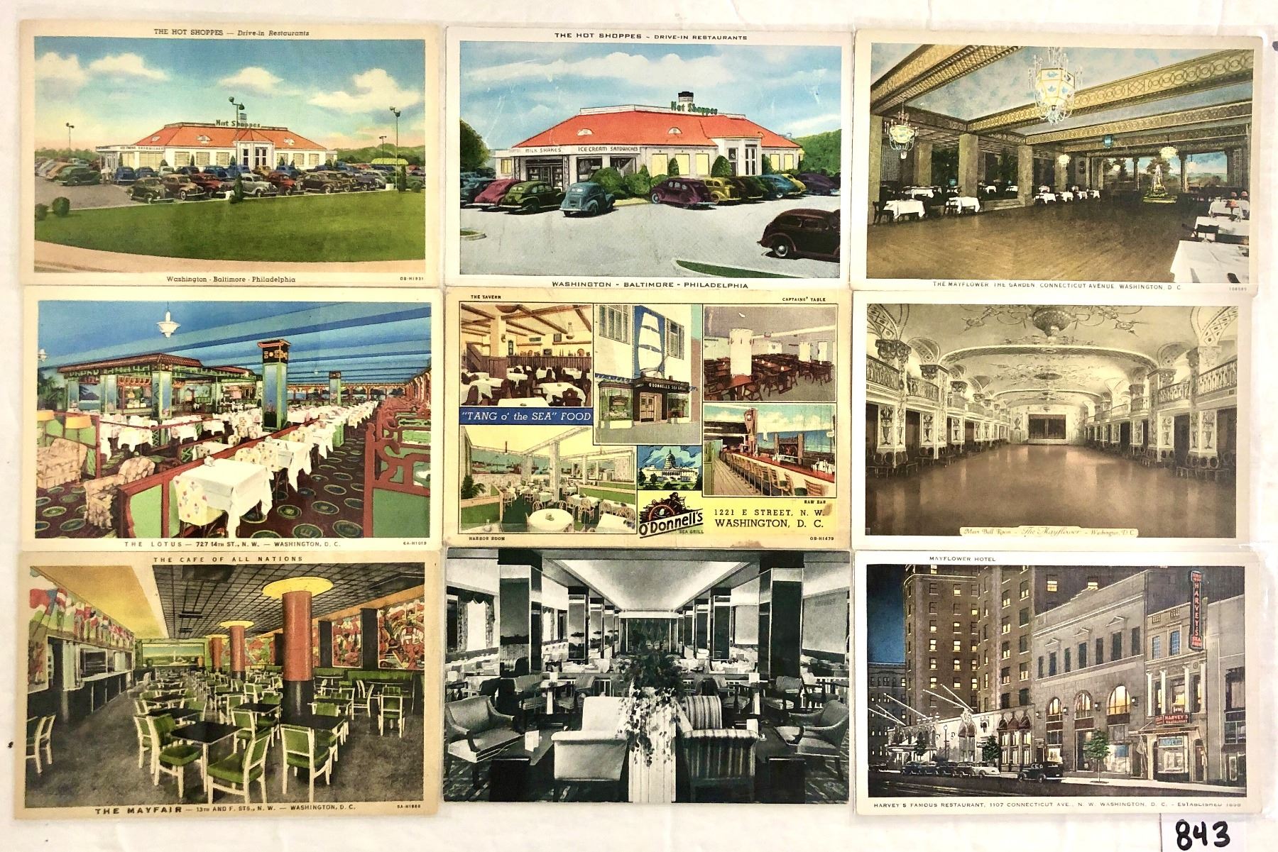 Over 130 DC hotels & restaurant postcards. Some duplication. Early to standard size chrome.