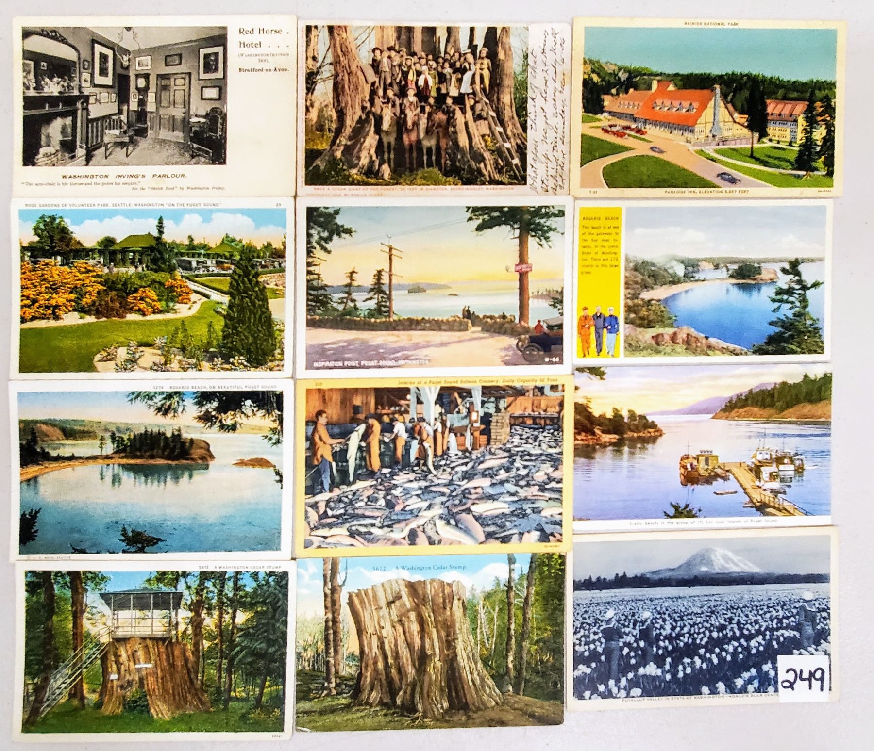 Over 275 WA postcards sorted o-z and 24+ towns. Early to linen.