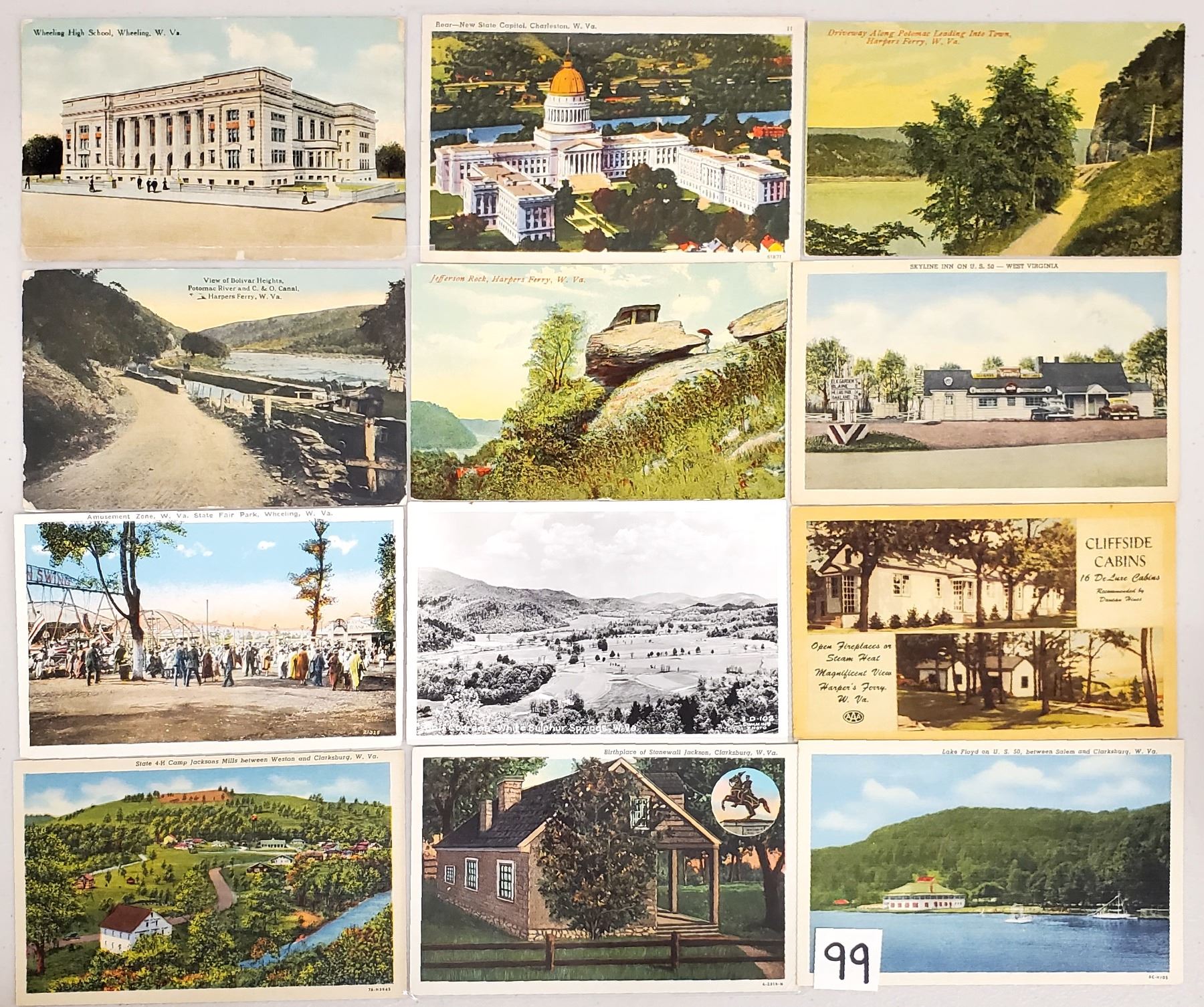 Approx 50 WV postcards. Early to linen, a couple real photo.