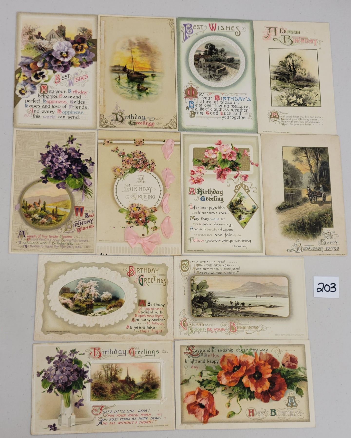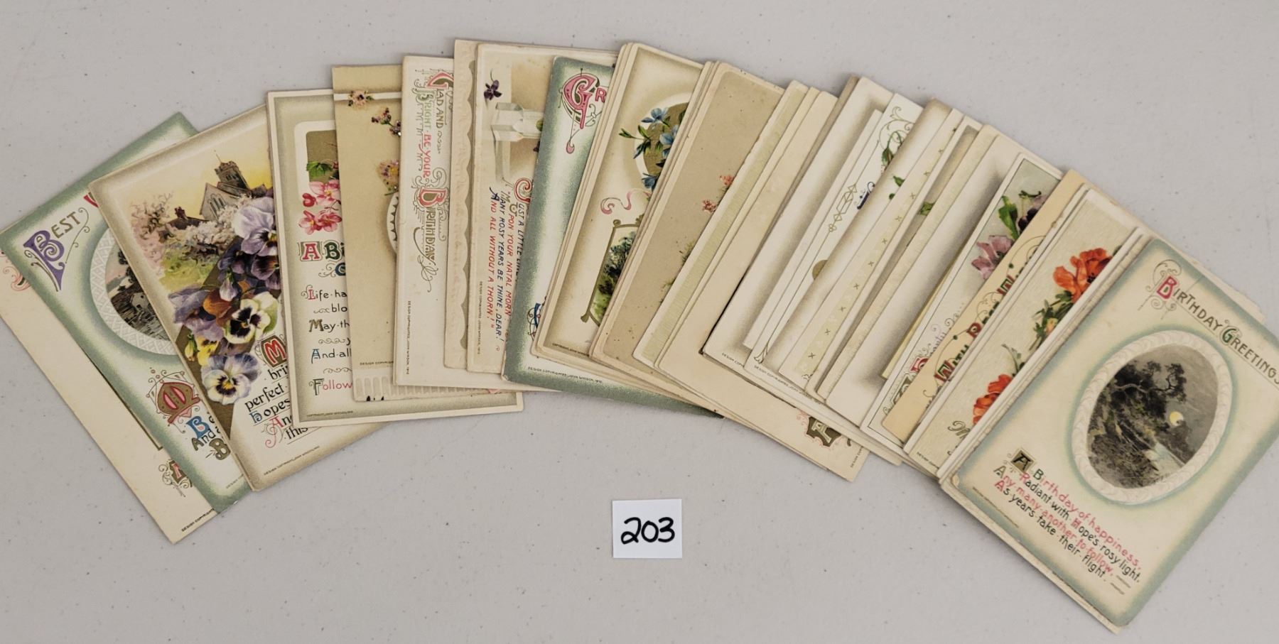 Approx. 40 Winsch birthday postcards. Early.