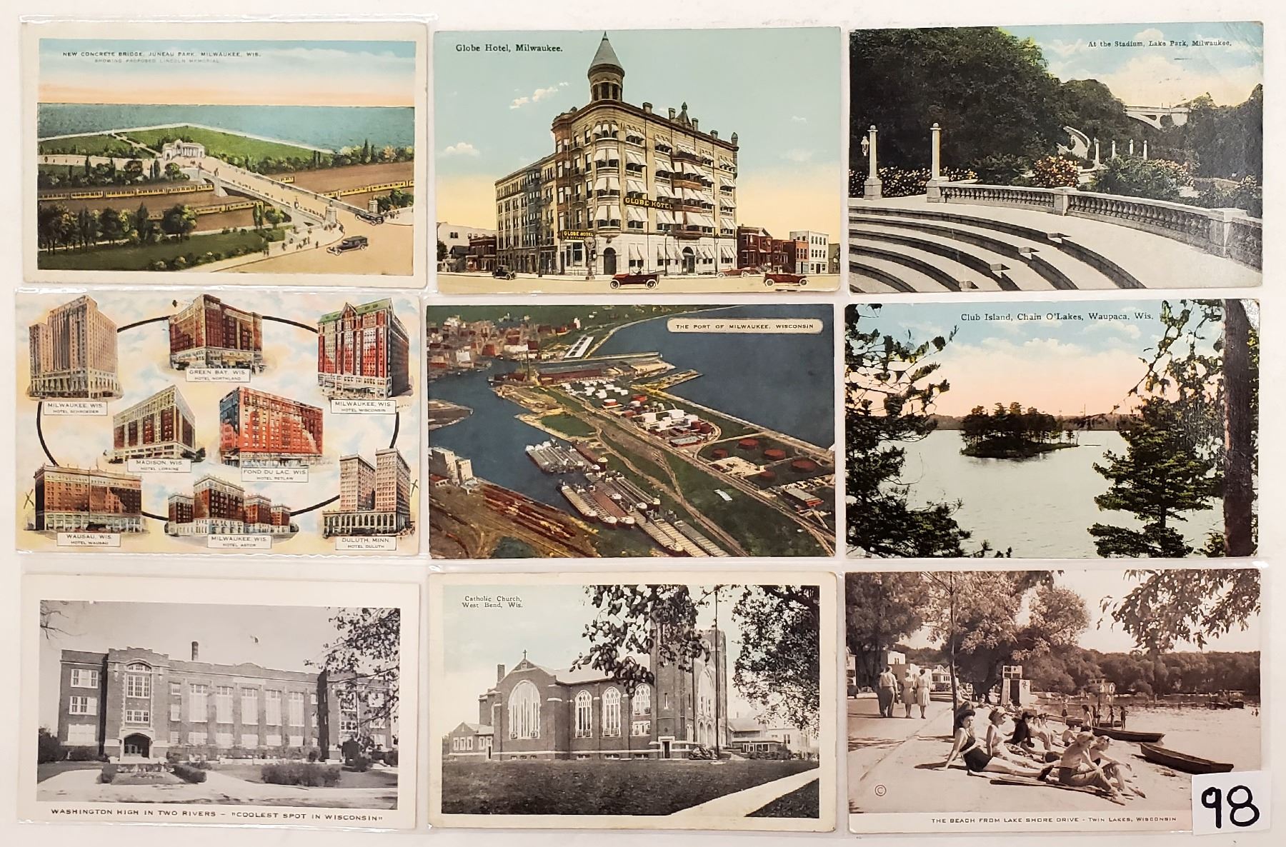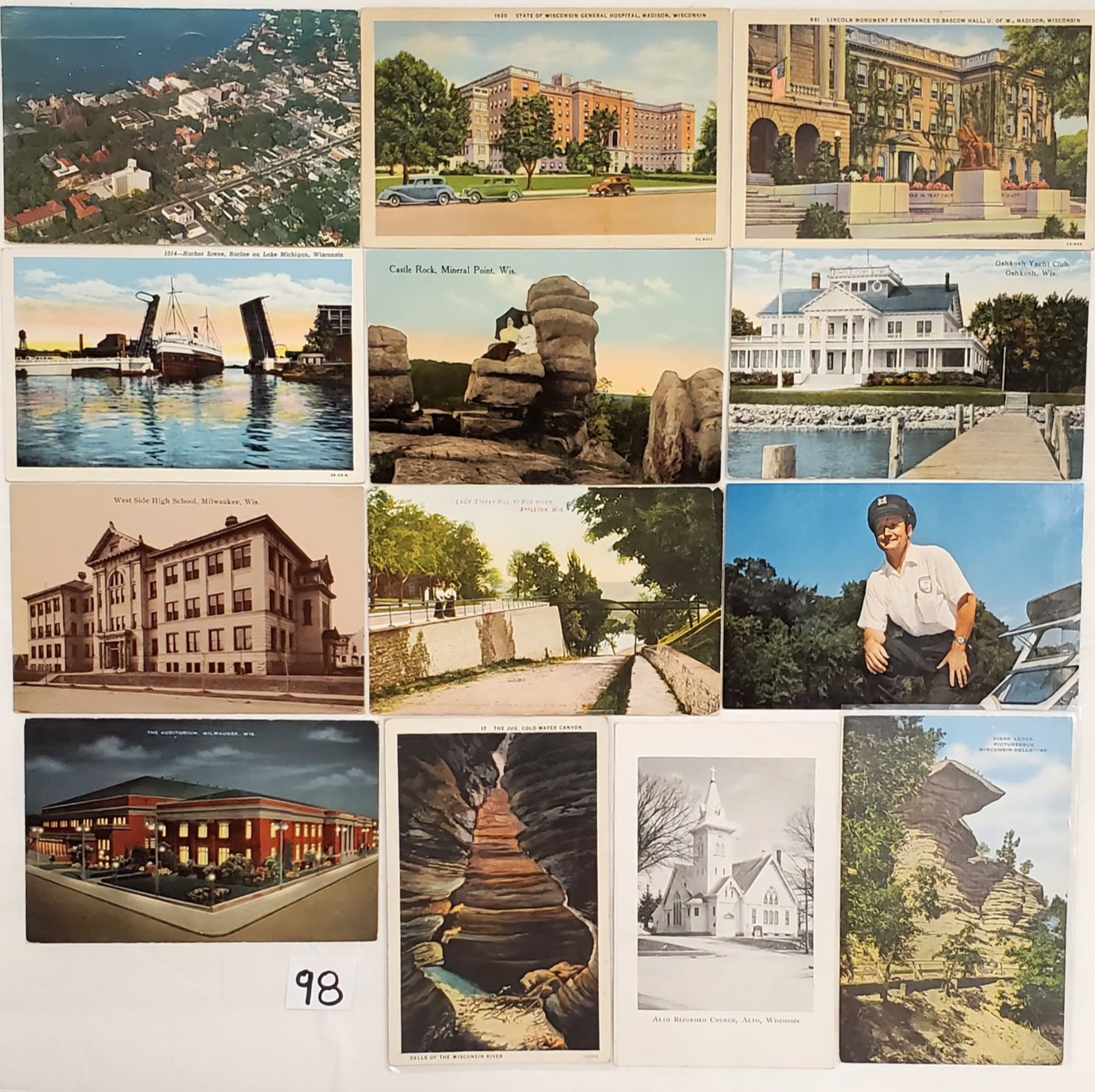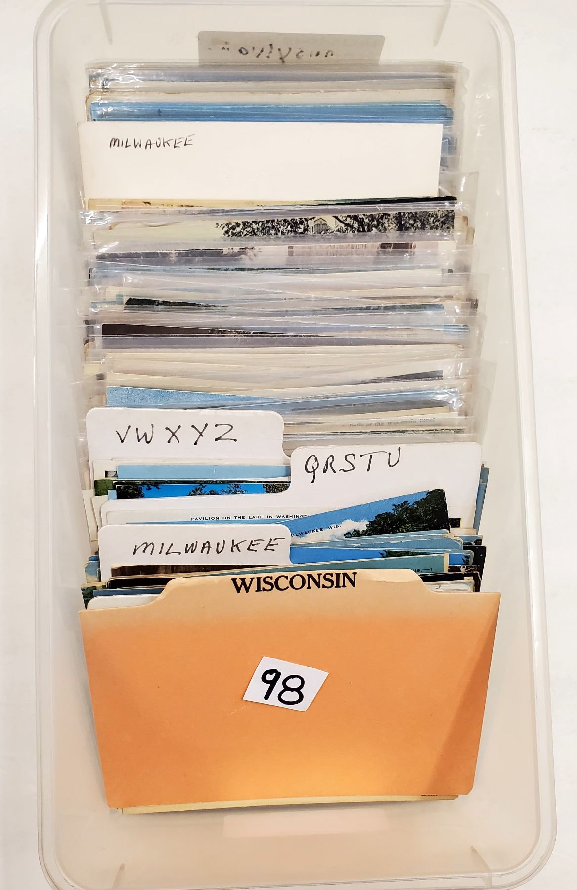 Over 250 Wisconsin postcards. Partially sorted. Early to standard size chrome.