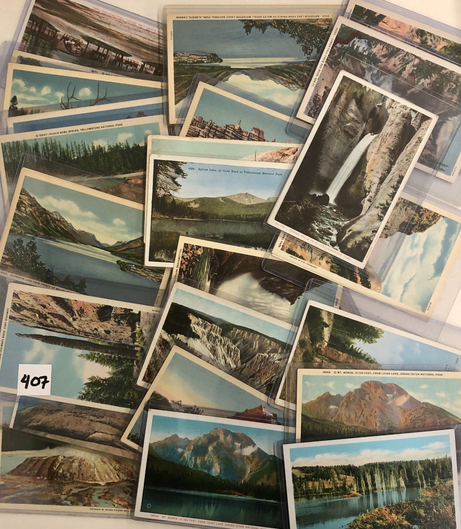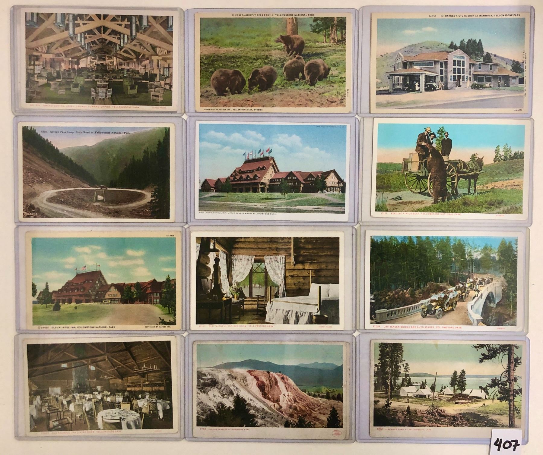 Over 70 Yellowstone postcards. Early to linen. Many Haynes, some Detroit publishing.